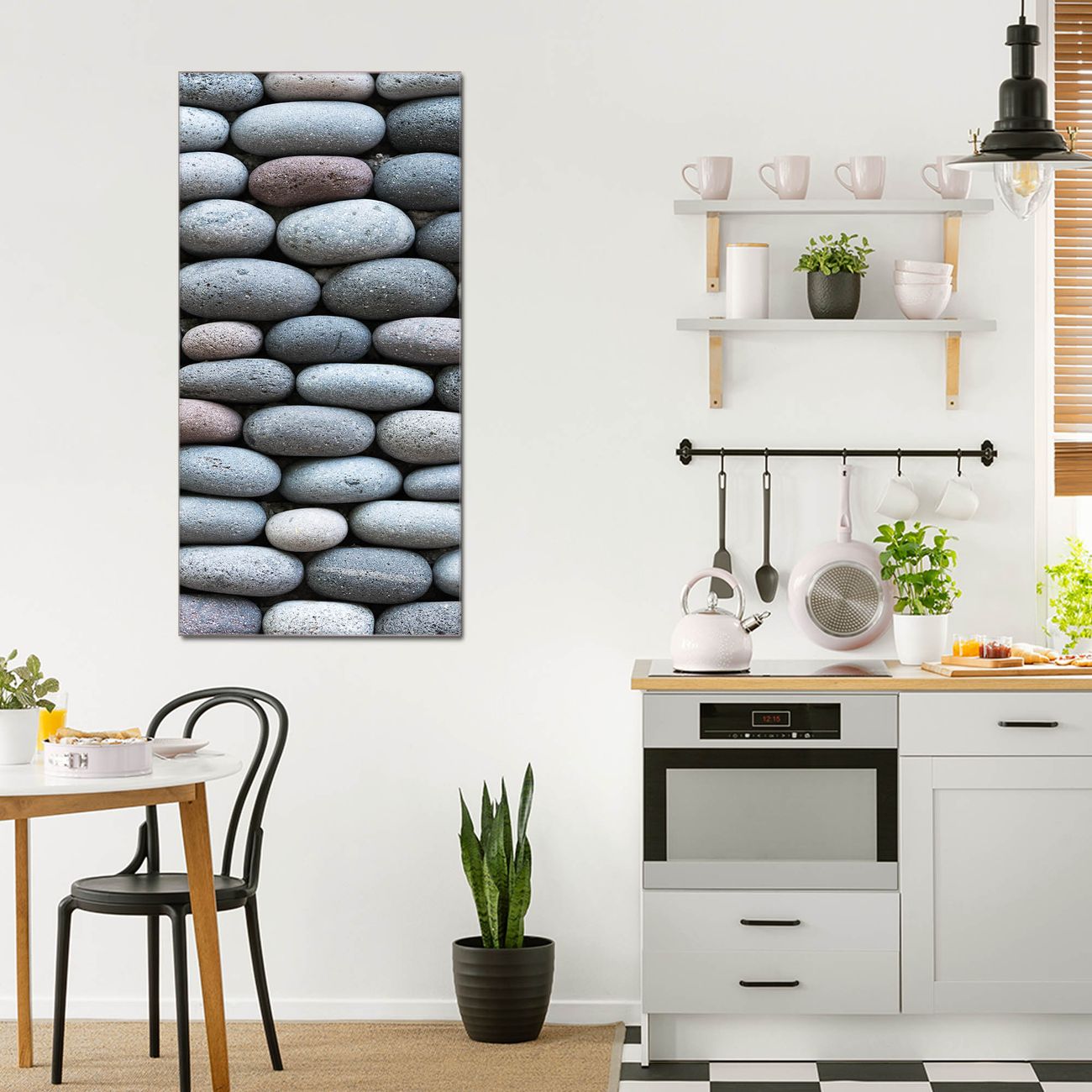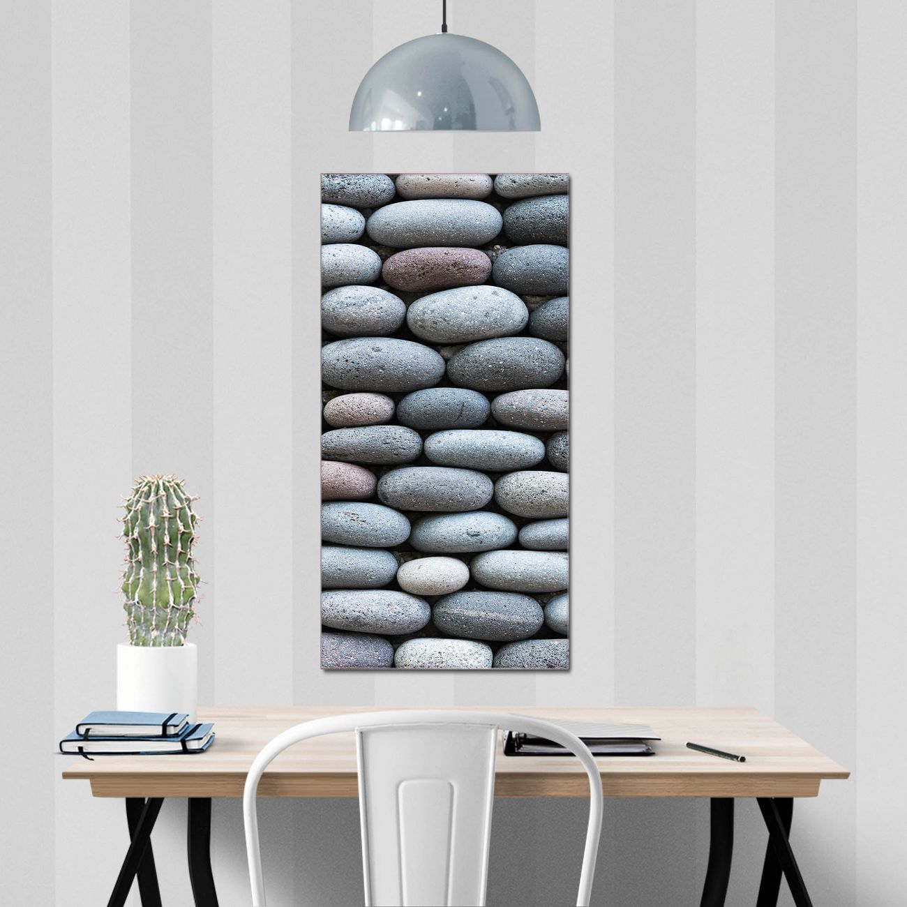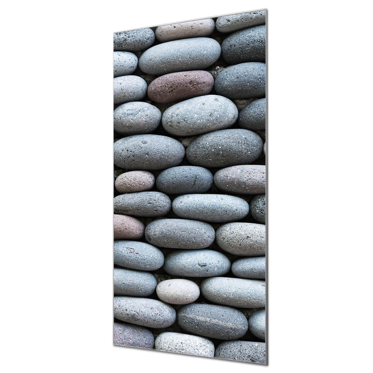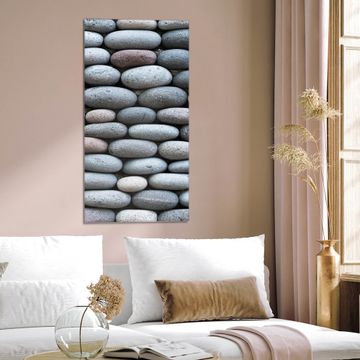 Brillantes Glasbild im Hochformat Runde Steine