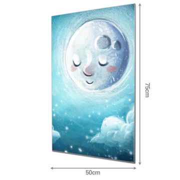 Unsere brillanten Glasbilder im Hochformat von banjado mit Motiv schlafender Mond sind der absolute Hingucker! Unsere Banjado Glasbilder sind sehr begehrt, weil sie top verarbeitet sind und sich ganz leicht montieren lassen. Schon mit wenigen Handgriffen hängen sie an der Wand und strahlen mit höchster brillianz. Durch die Ramenlose Herstellung schwebt das Echtglasbild förmlich an der Wand. Das Motiv erscheint besonders ausdrucksstark und hochwertig und ist hinter dem Echtglas geschützt.