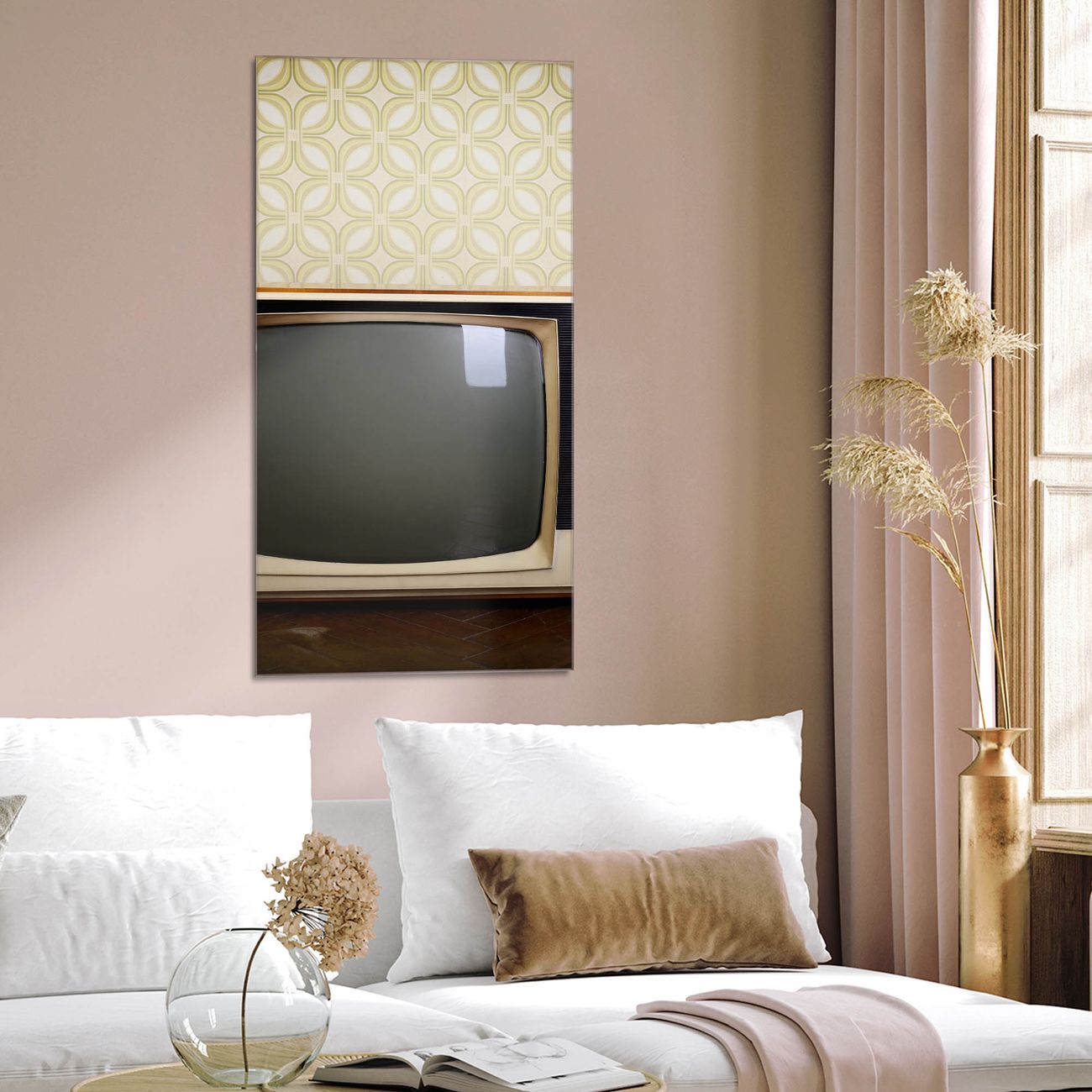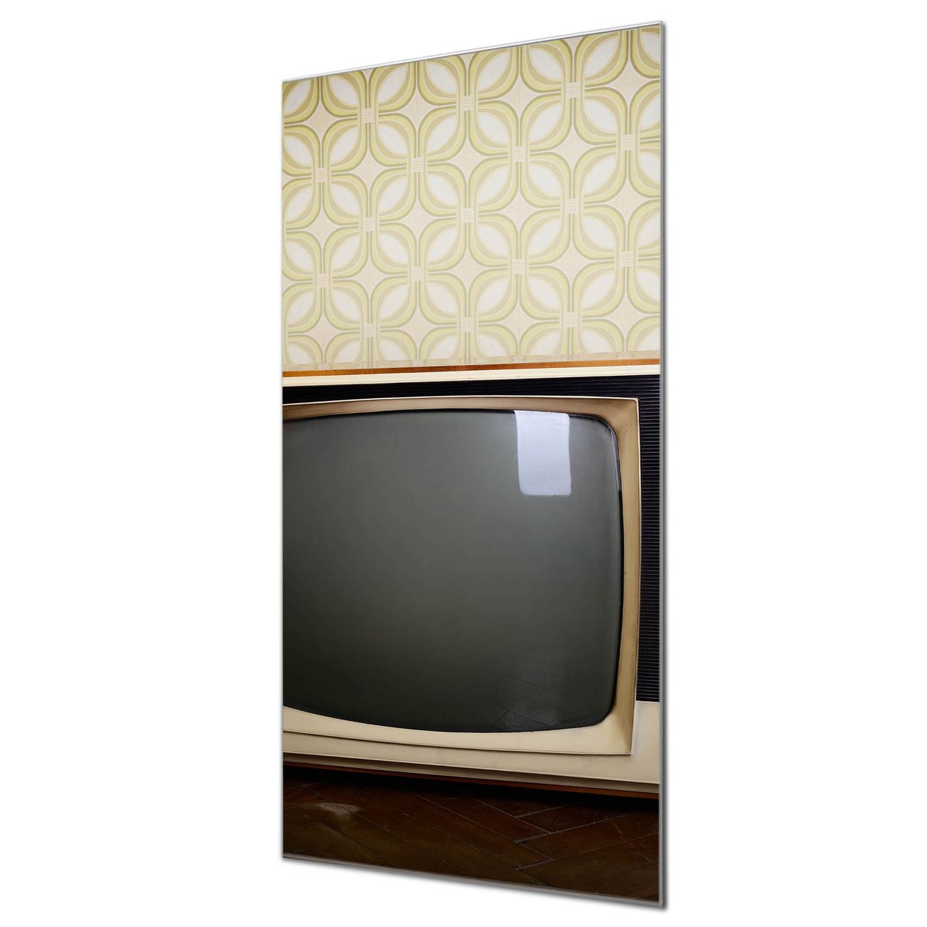 Brillantes Glasbild im Hochformat Schwarzweiß TV