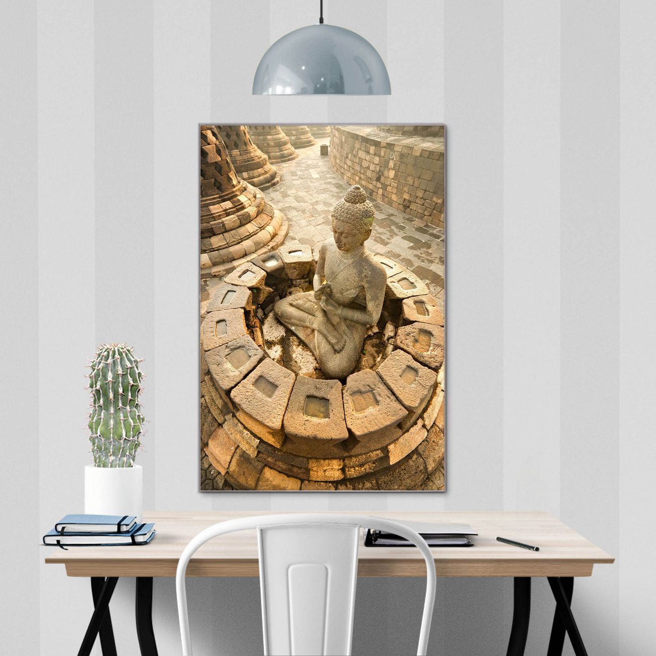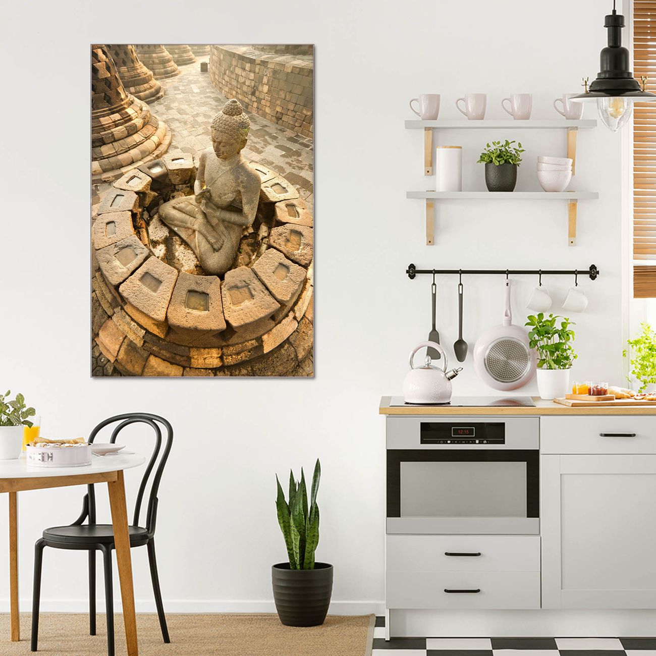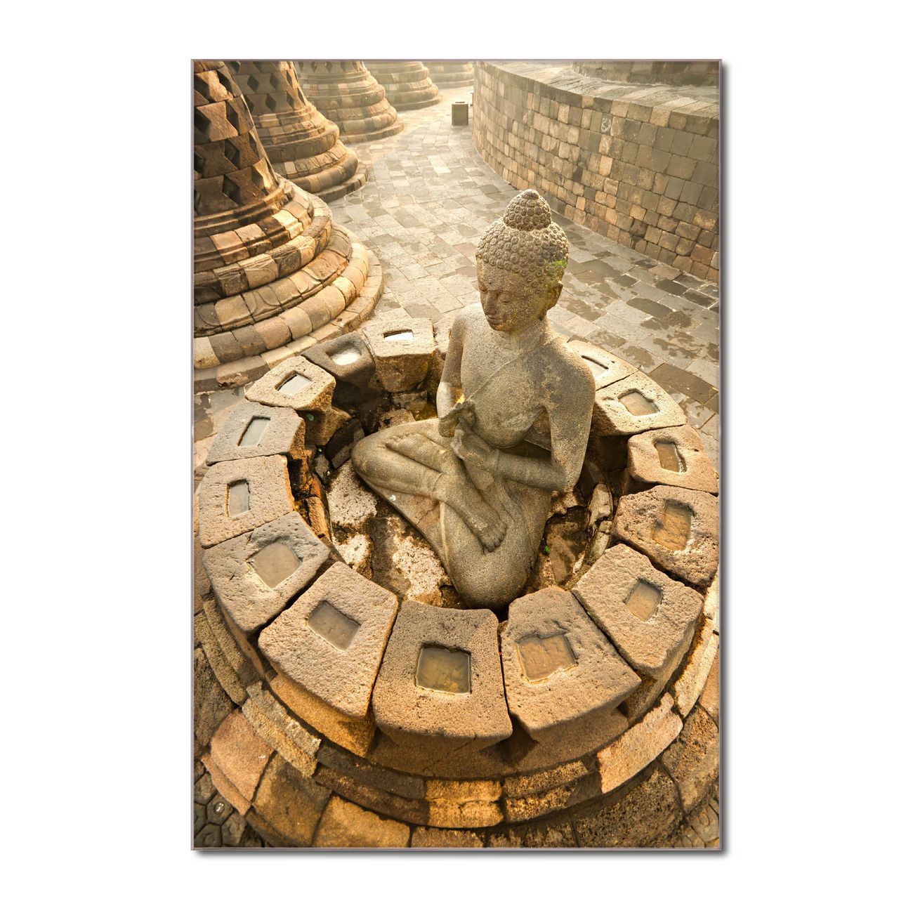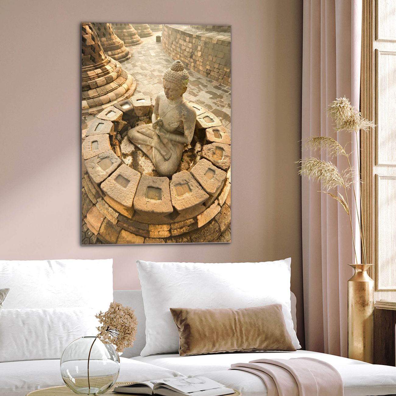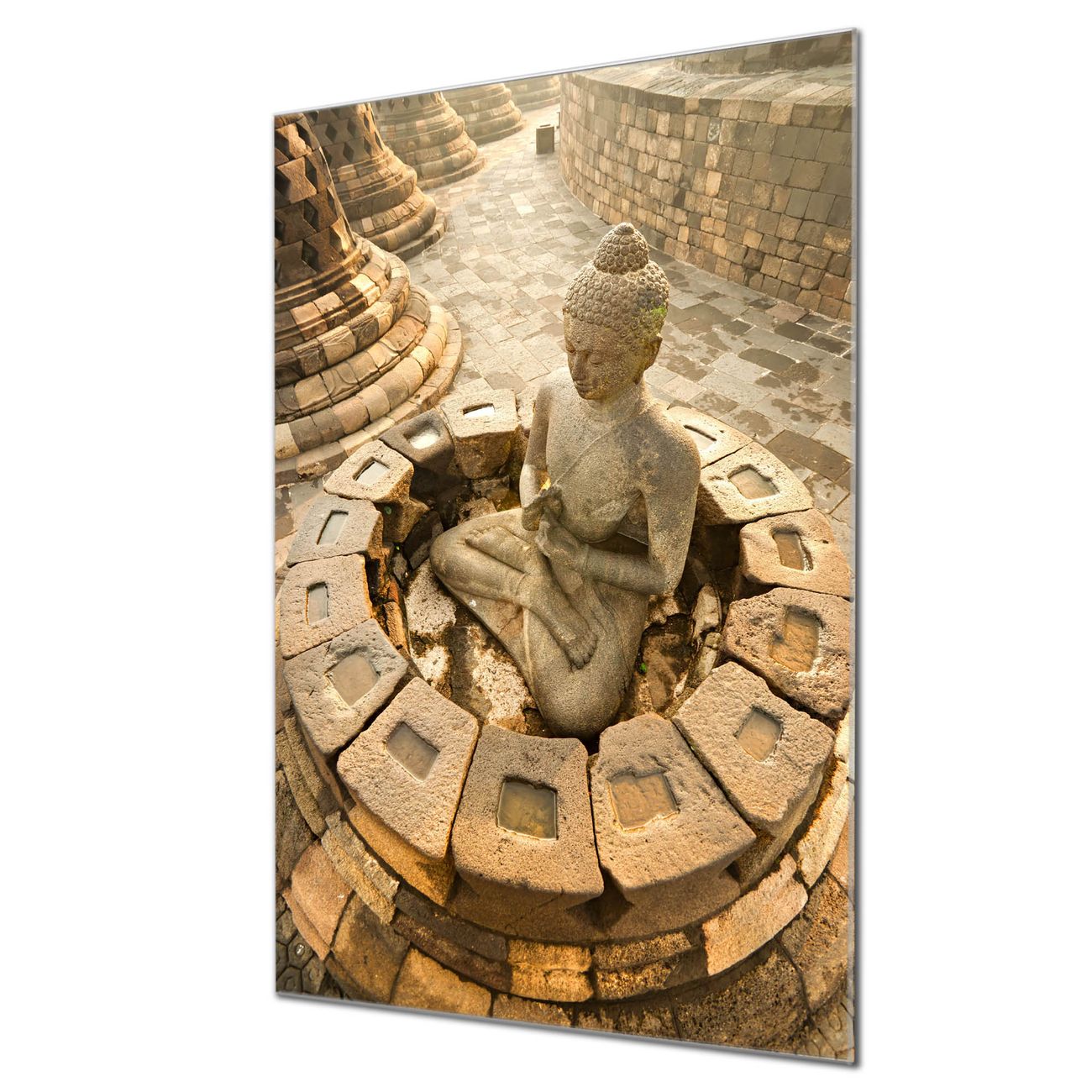 Brillantes Glasbild im Hochformat Sitzender Buddha