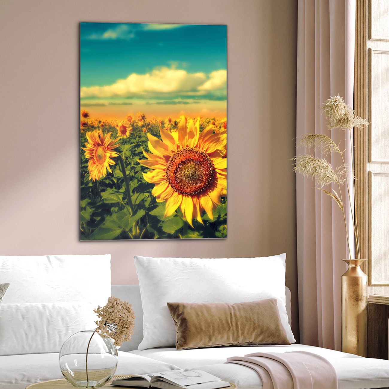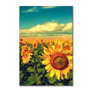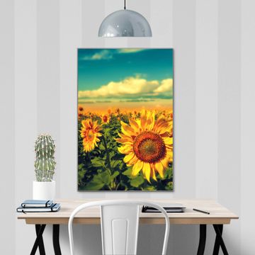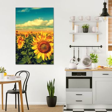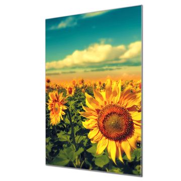 Brillantes Glasbild im Hochformat Sonnenblumen