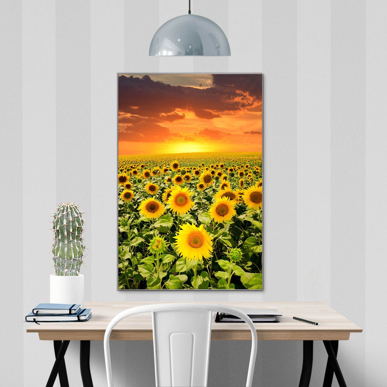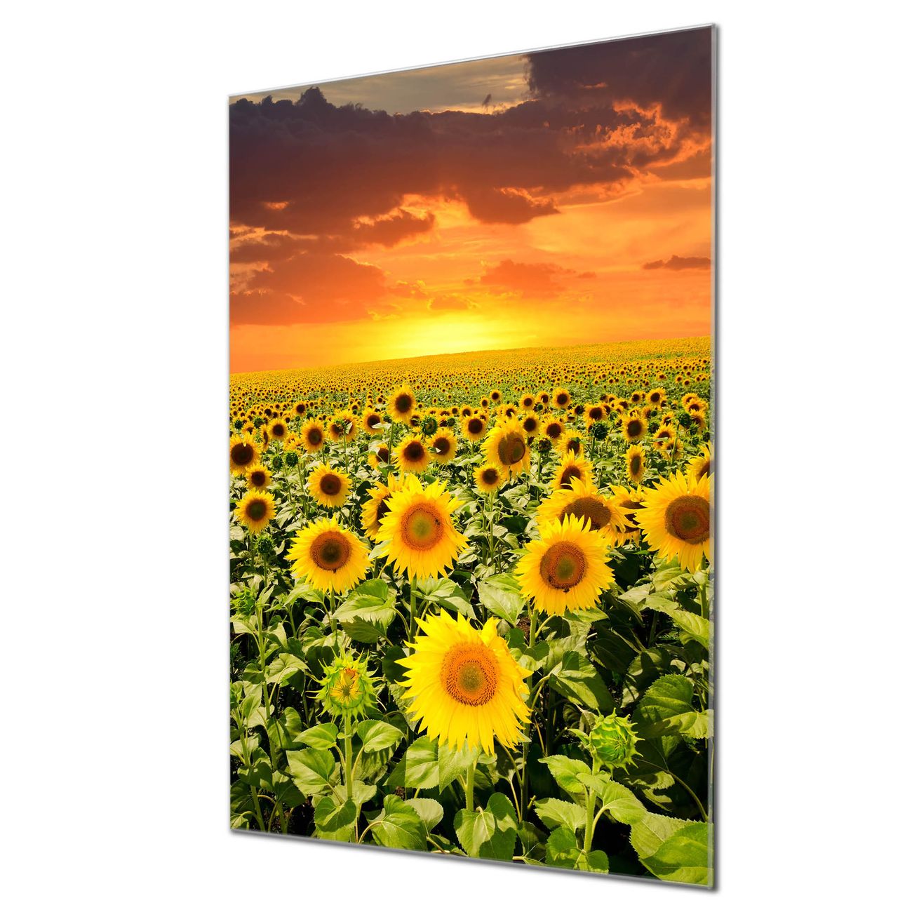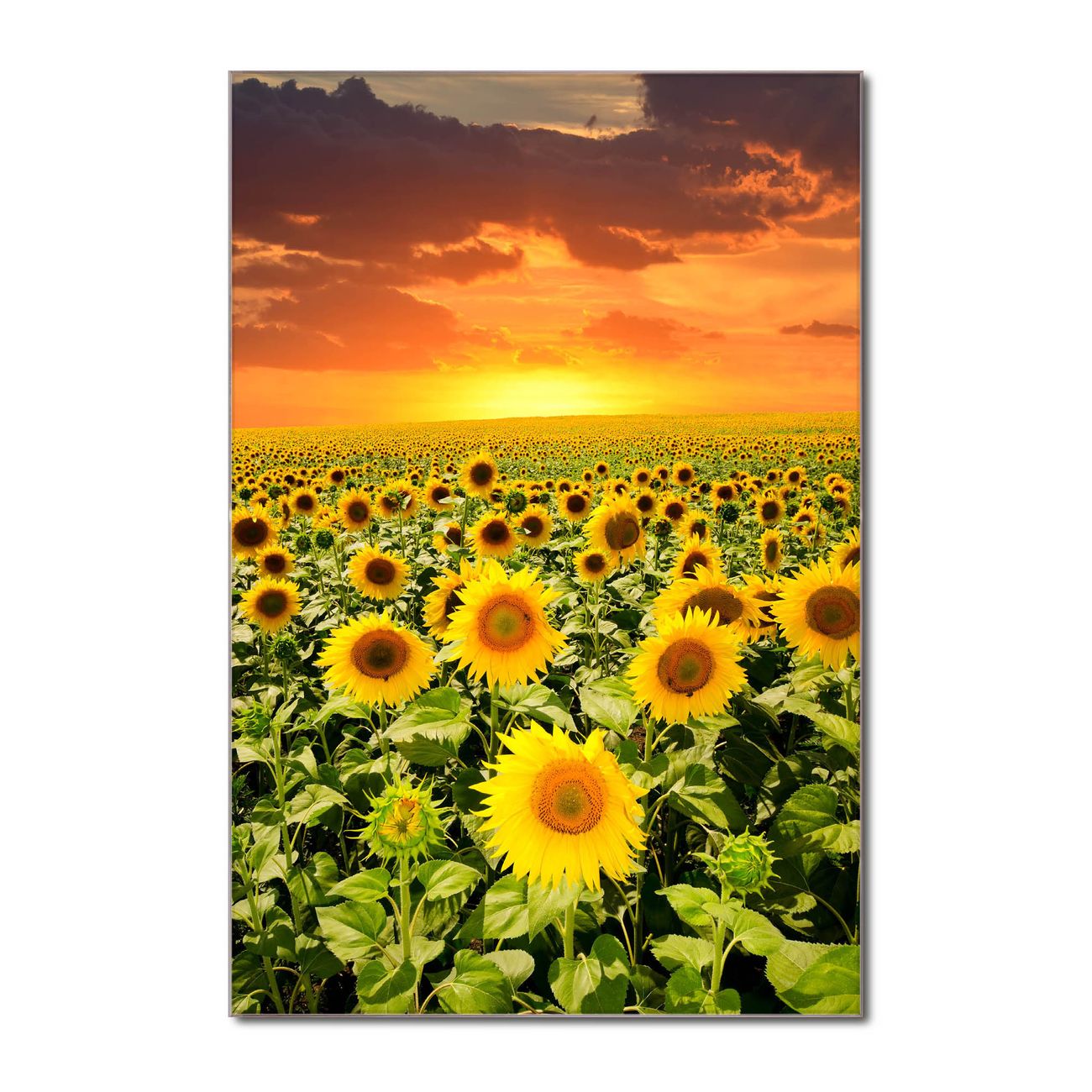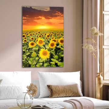 Brillantes Glasbild im Hochformat Sonnenblumenmeer
