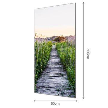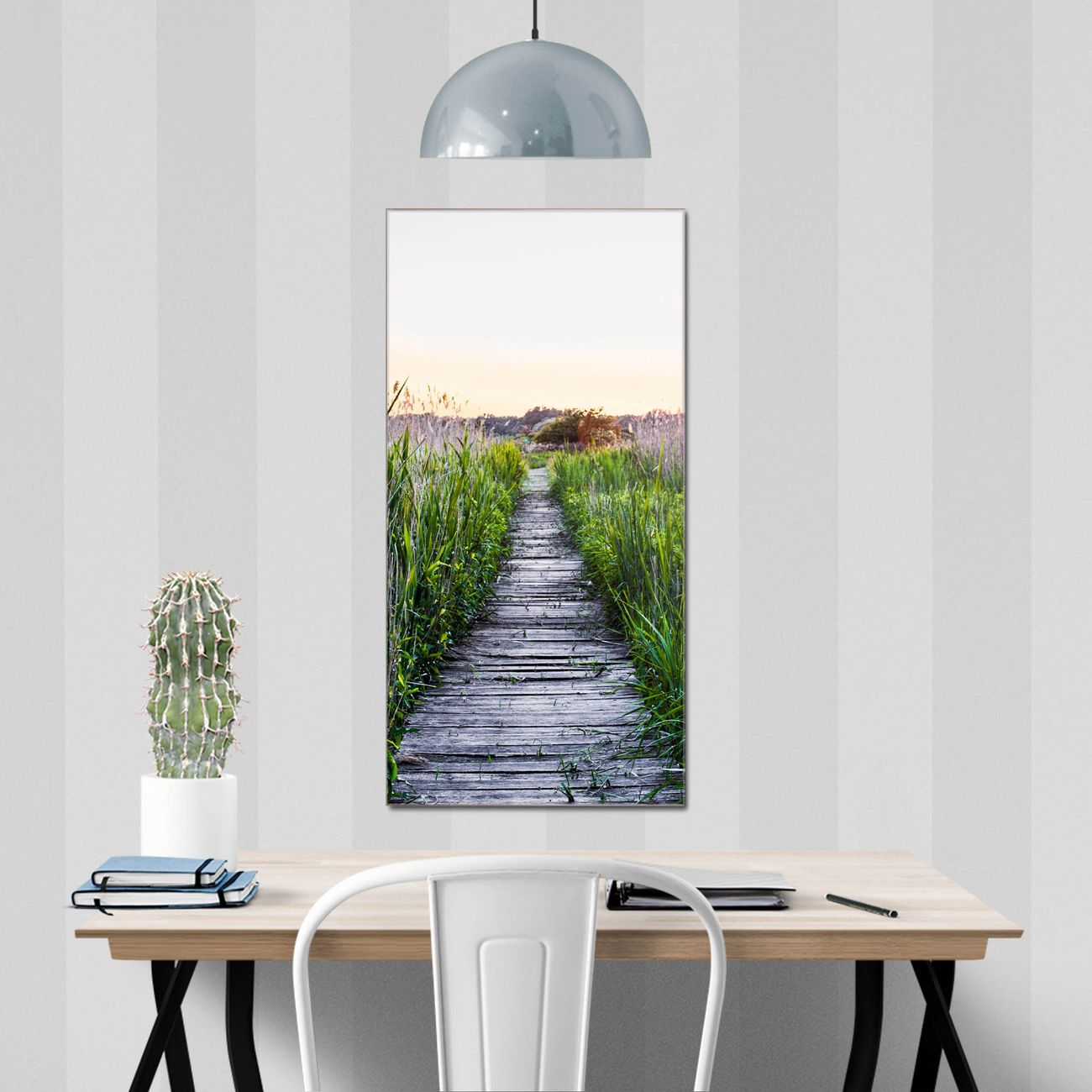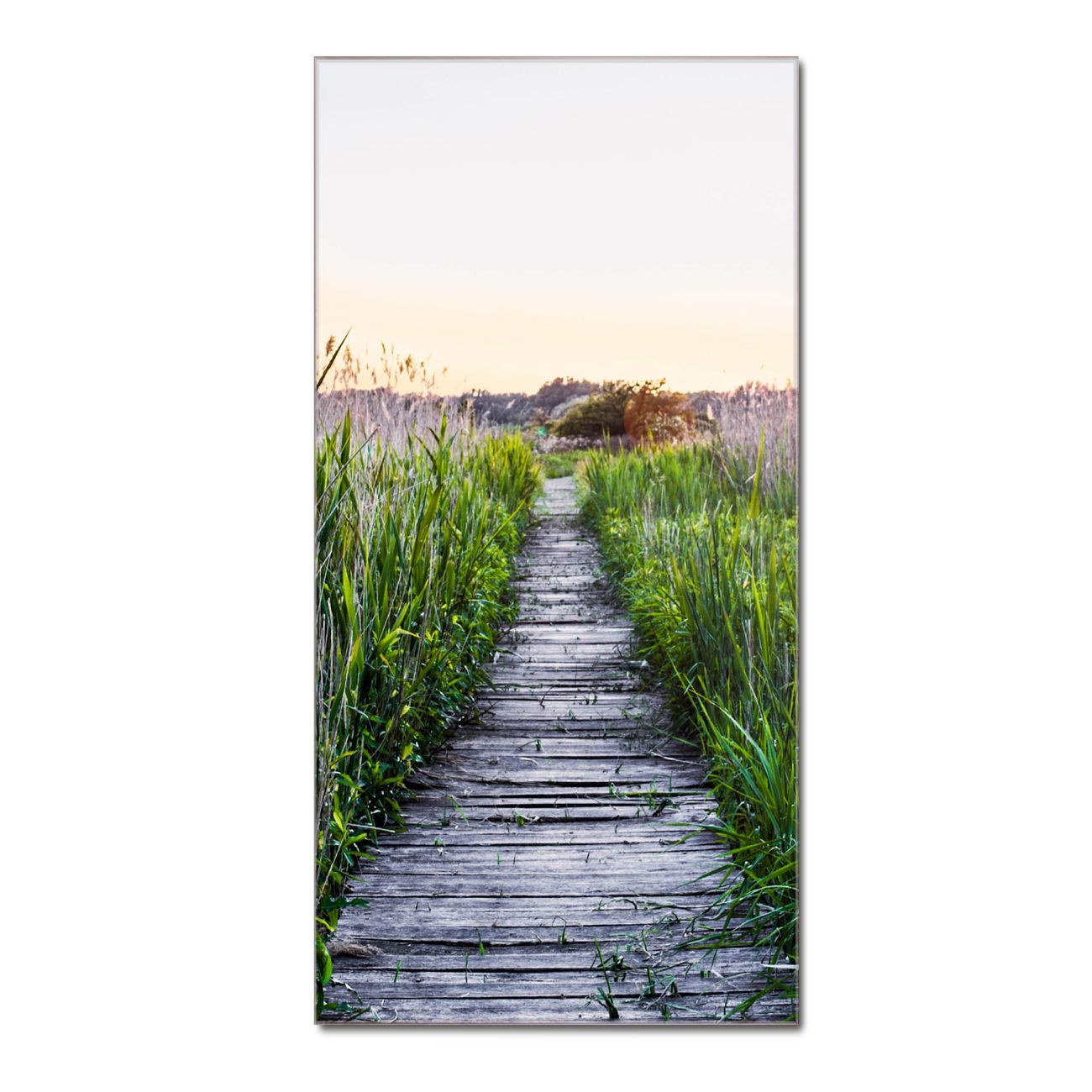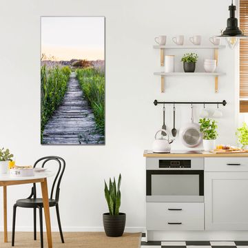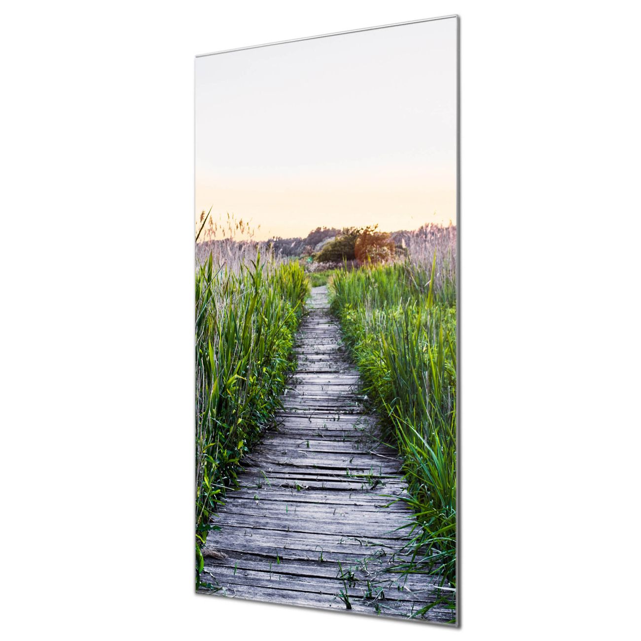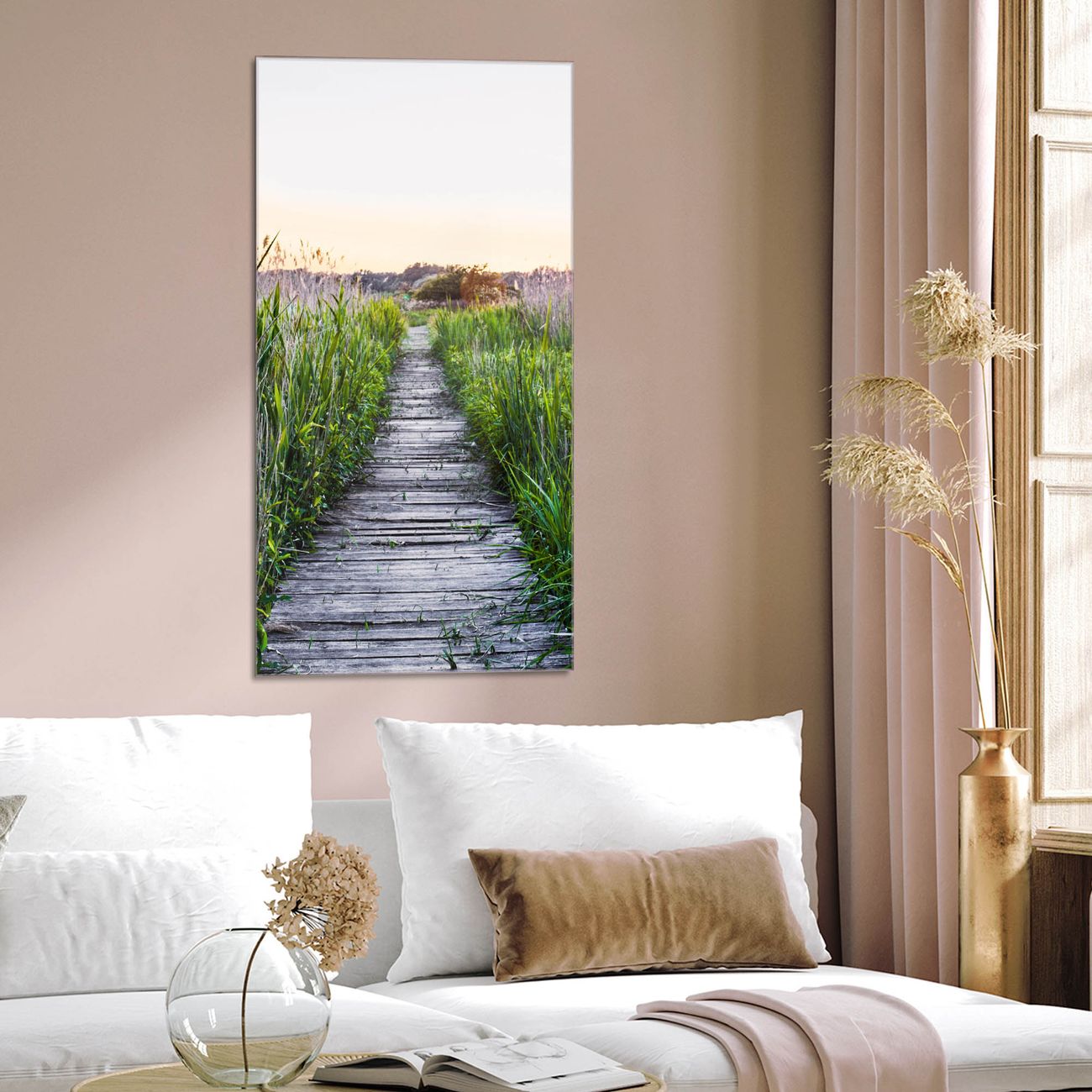 Unsere brillanten Glasbilder im Hochformat von banjado mit Motiv Steg Durchs Schilf sind der absolute Hingucker! Unsere Banjado Glasbilder sind sehr begehrt, weil sie top verarbeitet sind und sich ganz leicht montieren lassen. Schon mit wenigen Handgriffen hängen sie an der Wand und strahlen mit höchster brillianz. Durch die Ramenlose Herstellung schwebt das Echtglasbild förmlich an der Wand. Das Motiv erscheint besonders ausdrucksstark und hochwertig und ist hinter dem Echtglas geschützt.