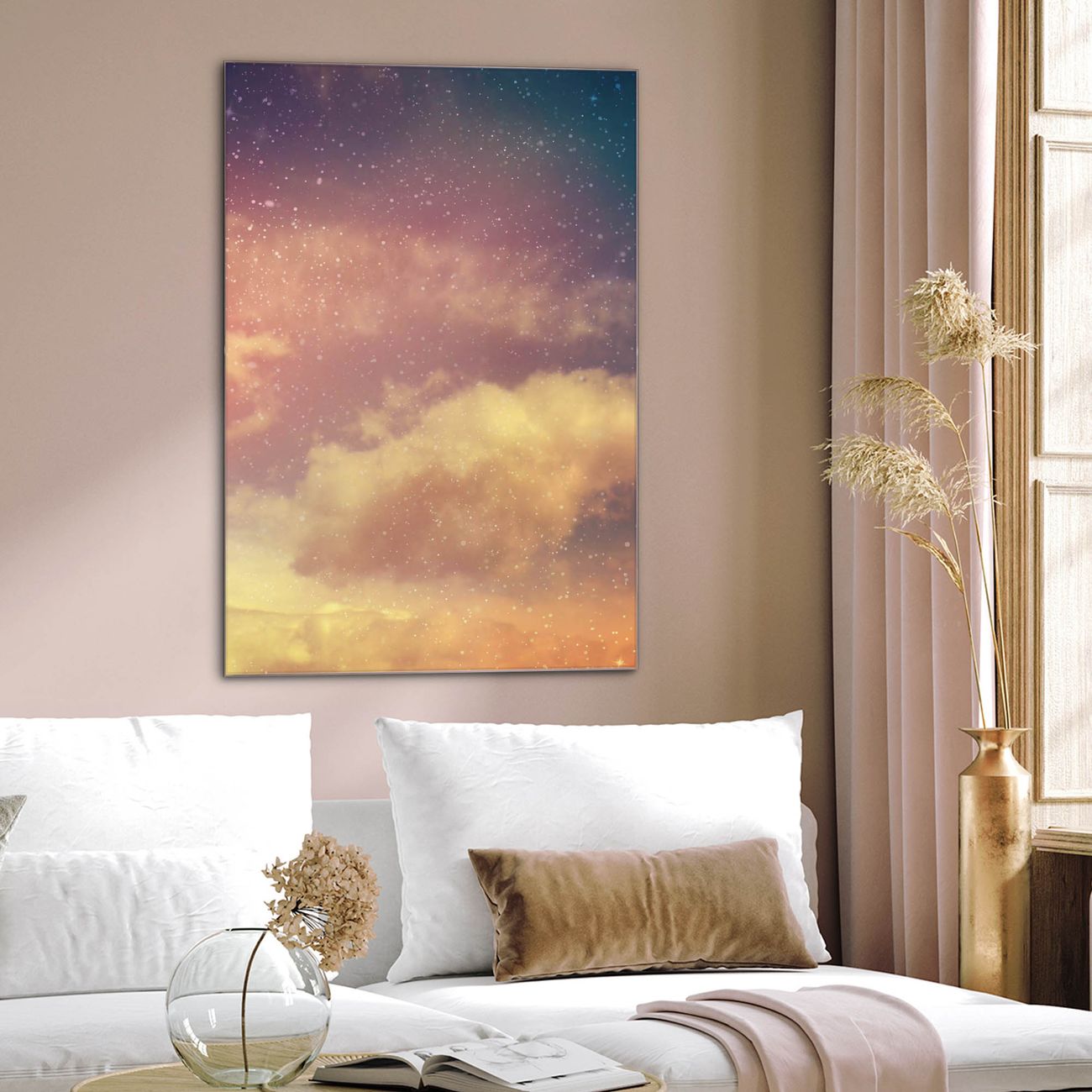 Brillantes Glasbild im Hochformat Sternenhimmel
