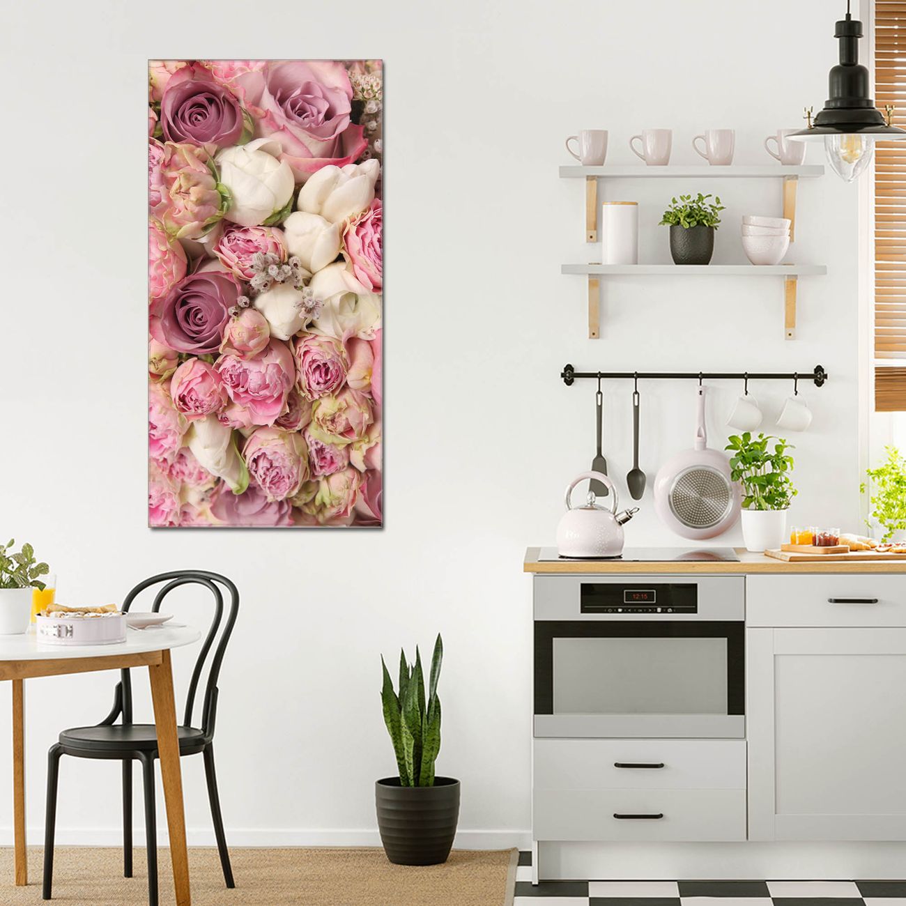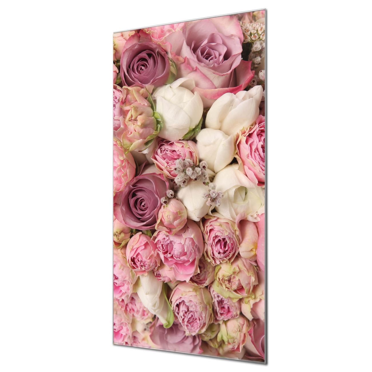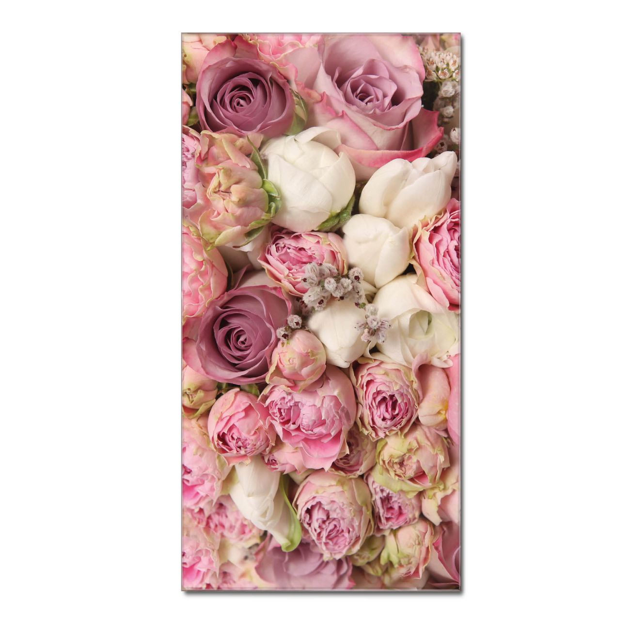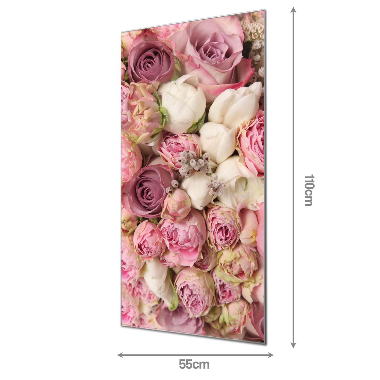 Material  4mm Sicherheitsglas mit Metallrückwand Eigenschaften  farbbrillant, kratzfest, rahmenlos Maße  55x110x0,6cm, 9,08 kg schwer Motiv  Nummer 11473 Strauss Rosen