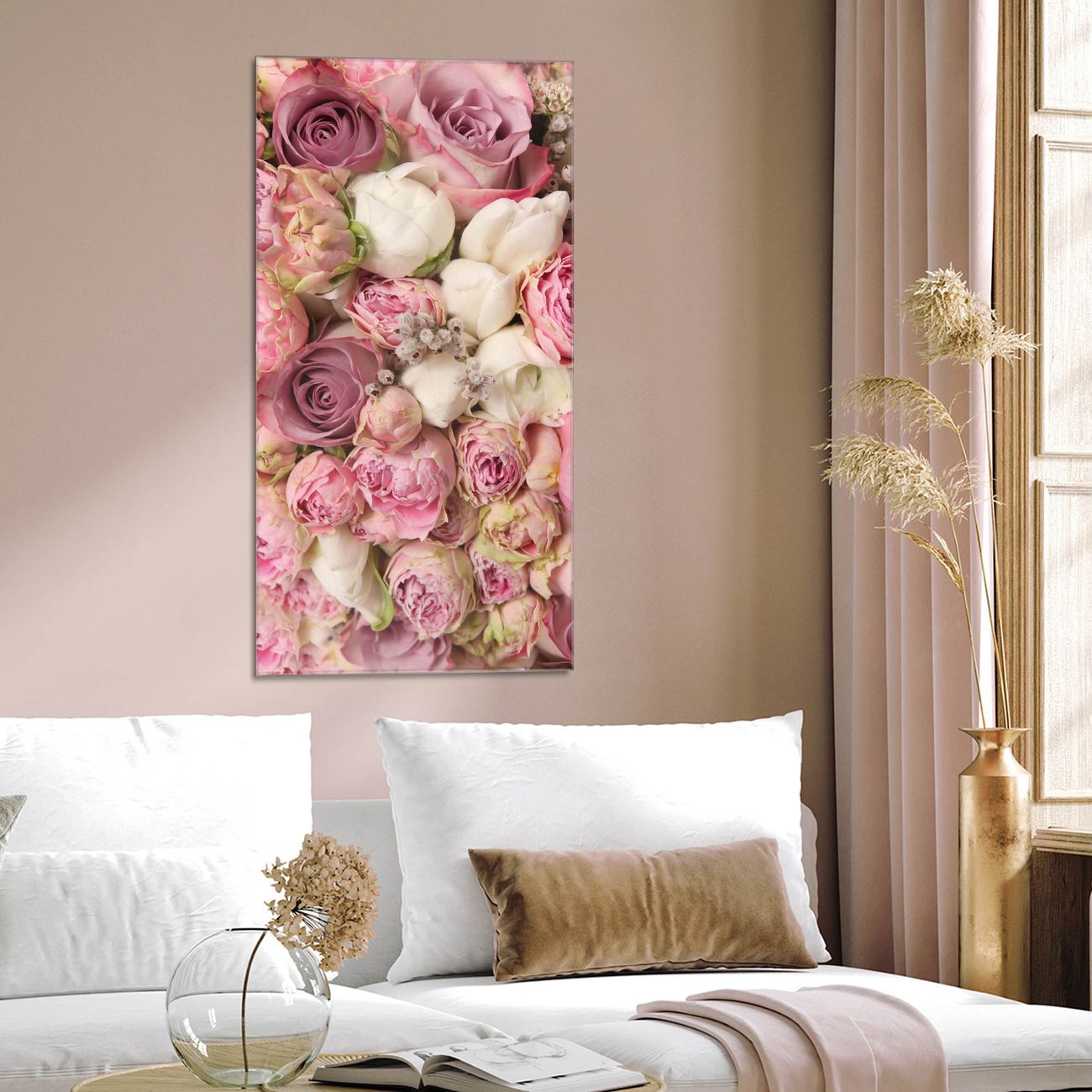 Brillantes Glasbild im Hochformat Strauss Rosen