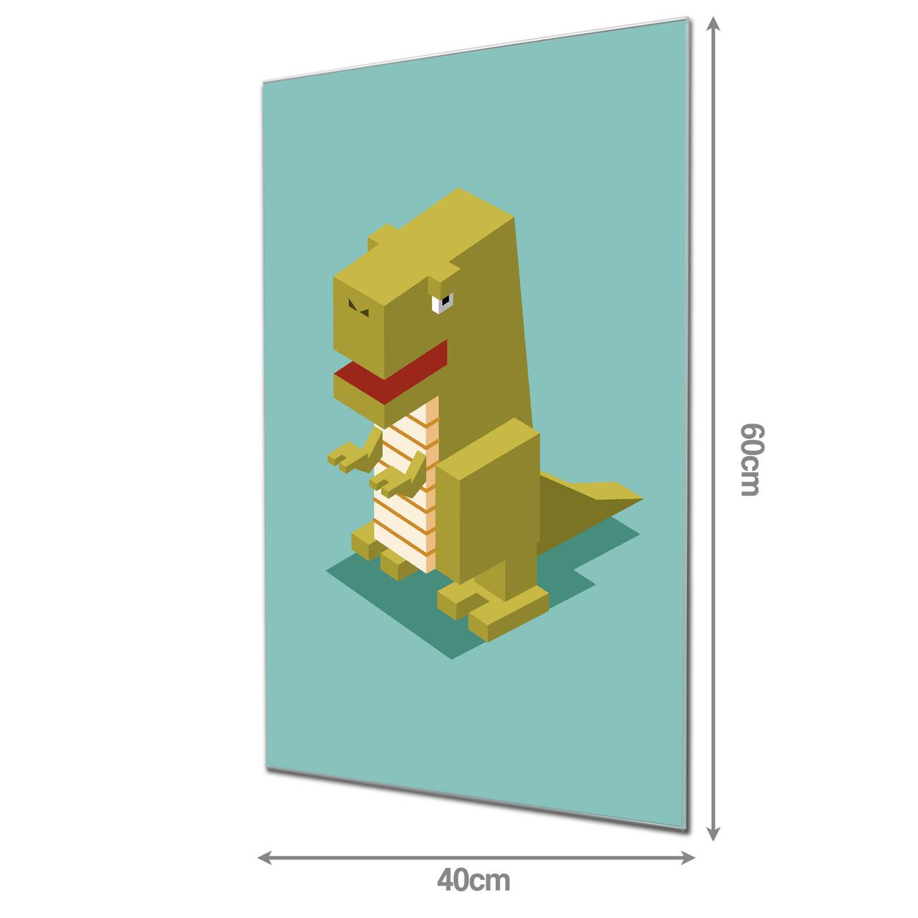 Brillantes Glasbild im Hochformat T-Rex Block