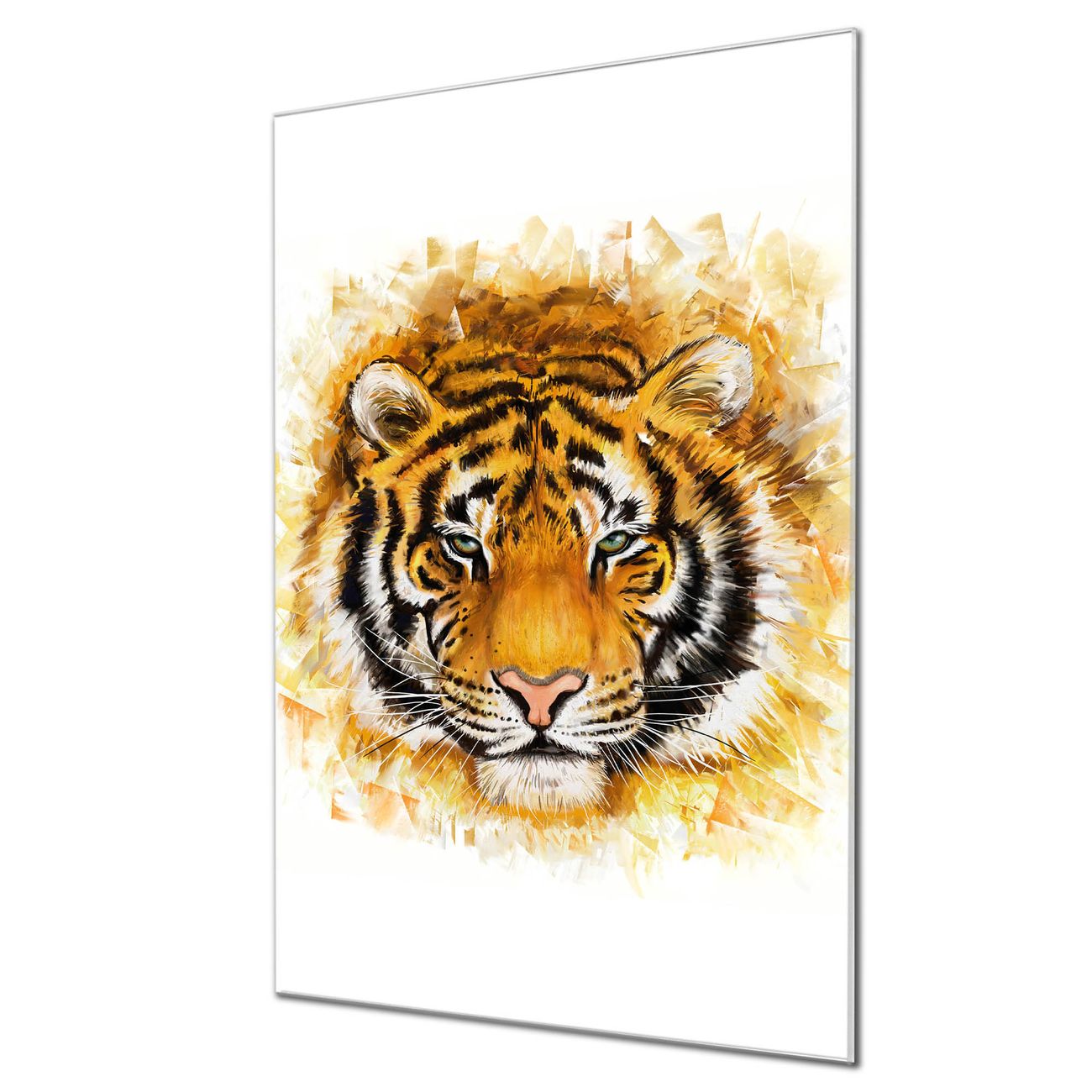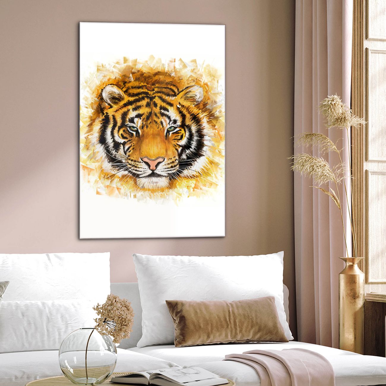 Unsere brillanten Glasbilder im Hochformat von banjado mit Motiv Tigerkopf sind der absolute Hingucker! Unsere Banjado Glasbilder sind sehr begehrt, weil sie top verarbeitet sind und sich ganz leicht montieren lassen. Schon mit wenigen Handgriffen hängen sie an der Wand und strahlen mit höchster brillianz. Durch die Ramenlose Herstellung schwebt das Echtglasbild förmlich an der Wand. Das Motiv erscheint besonders ausdrucksstark und hochwertig und ist hinter dem Echtglas geschützt.