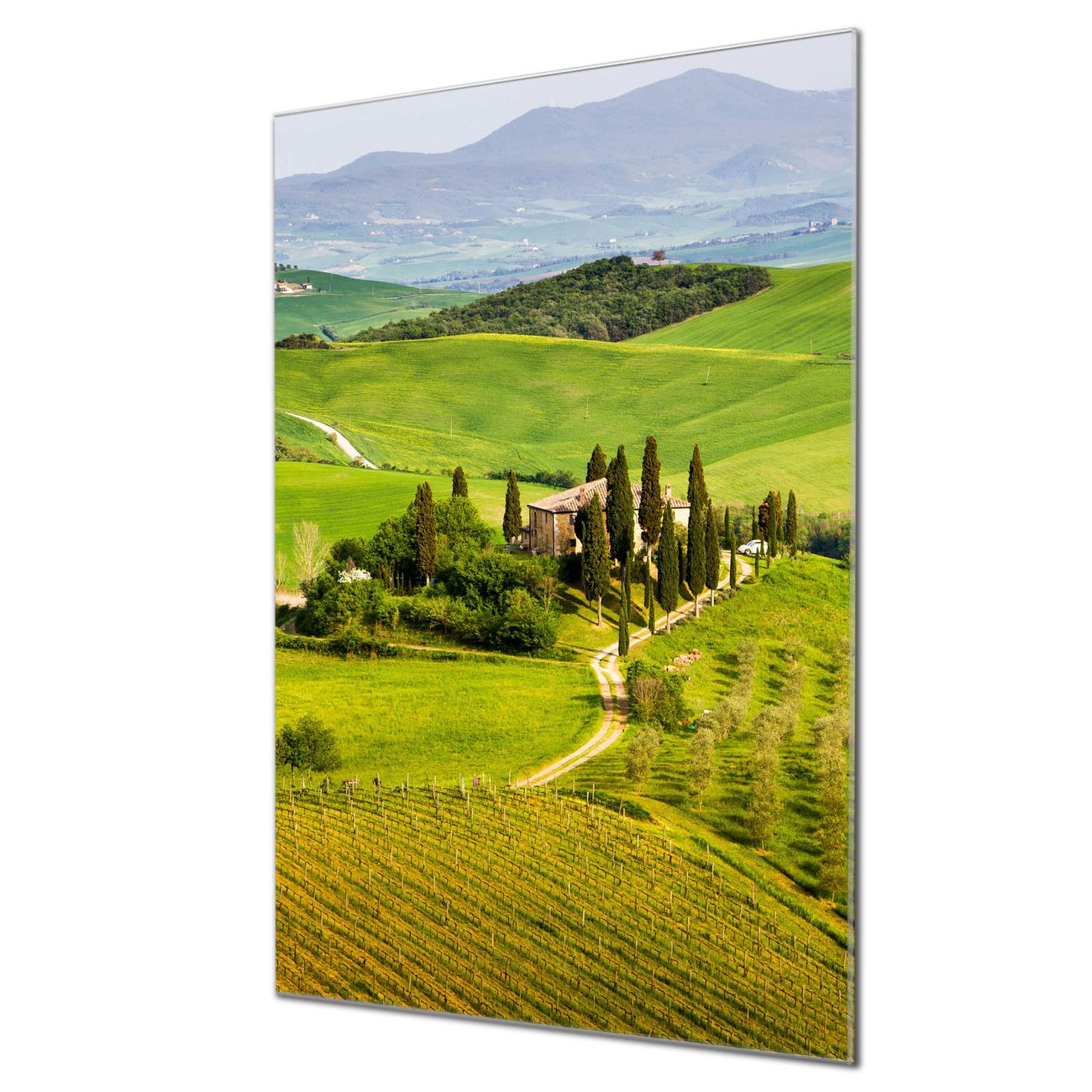 Unsere brillanten Glasbilder im Hochformat von banjado mit Motiv Toskana sind der absolute Hingucker! Unsere Banjado Glasbilder sind sehr begehrt, weil sie top verarbeitet sind und sich ganz leicht montieren lassen. Schon mit wenigen Handgriffen hängen sie an der Wand und strahlen mit höchster brillianz. Durch die Ramenlose Herstellung schwebt das Echtglasbild förmlich an der Wand. Das Motiv erscheint besonders ausdrucksstark und hochwertig und ist hinter dem Echtglas geschützt.