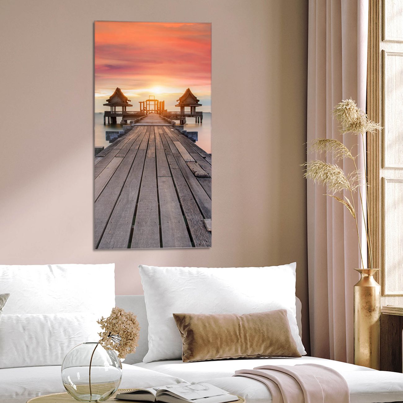 Das Glasbild besteht aus 4mm gehärtetem Glas, auf der Rückseite befinden sich hochwertige Aufhängungen die eine schnelle und unkomplizierte Anbringung ermöglicht.