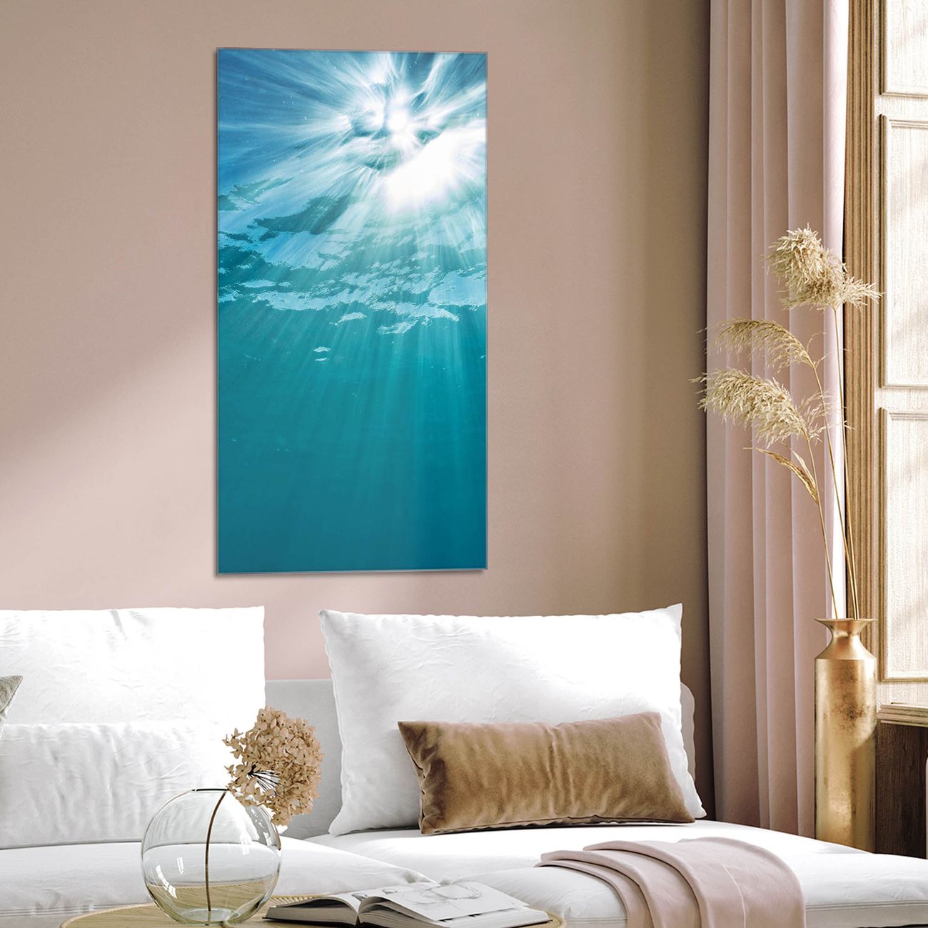 Brillantes Glasbild im Hochformat