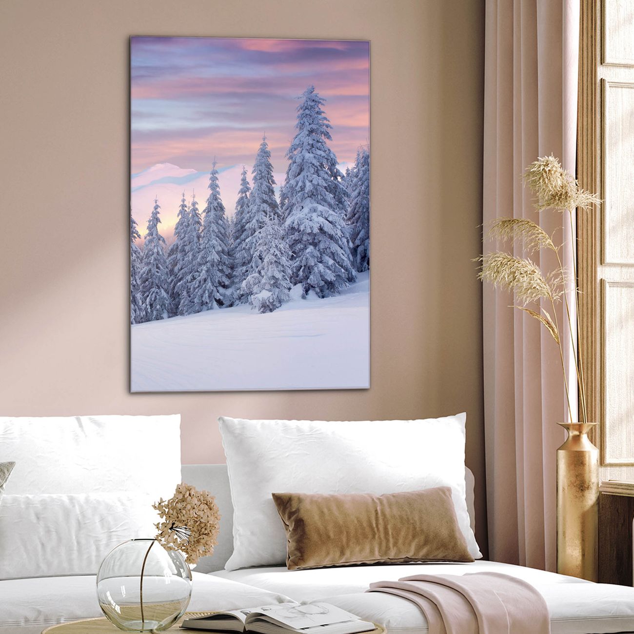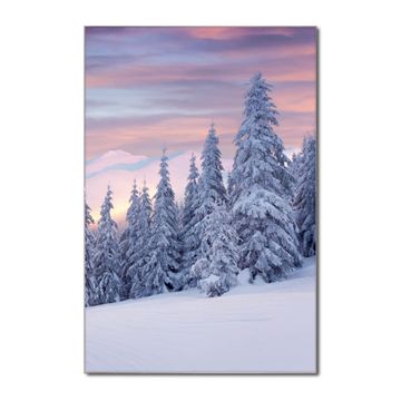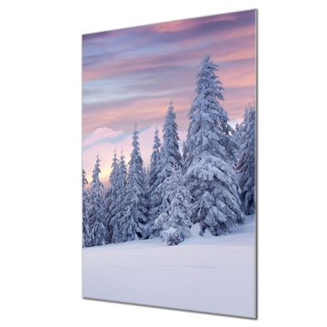 Brillantes Glasbild im Hochformat Verschneite Berge