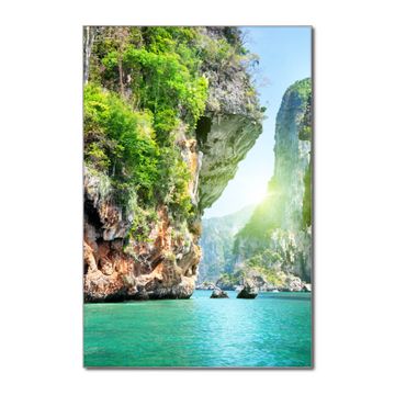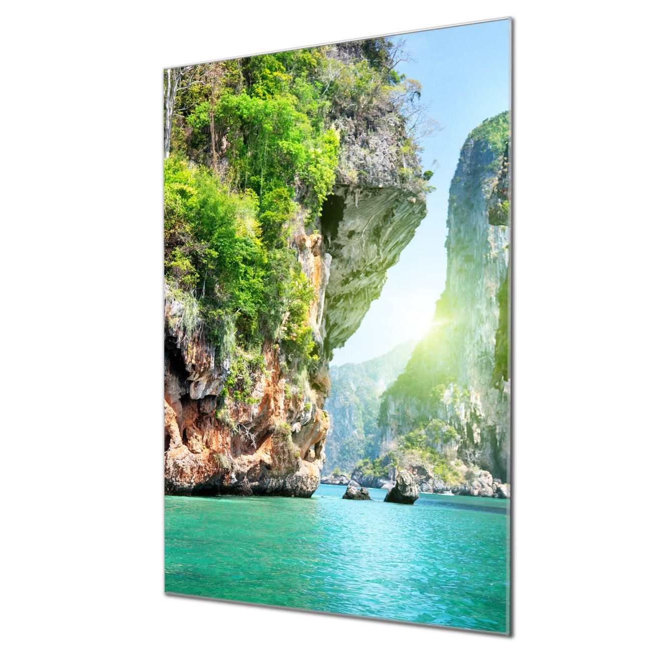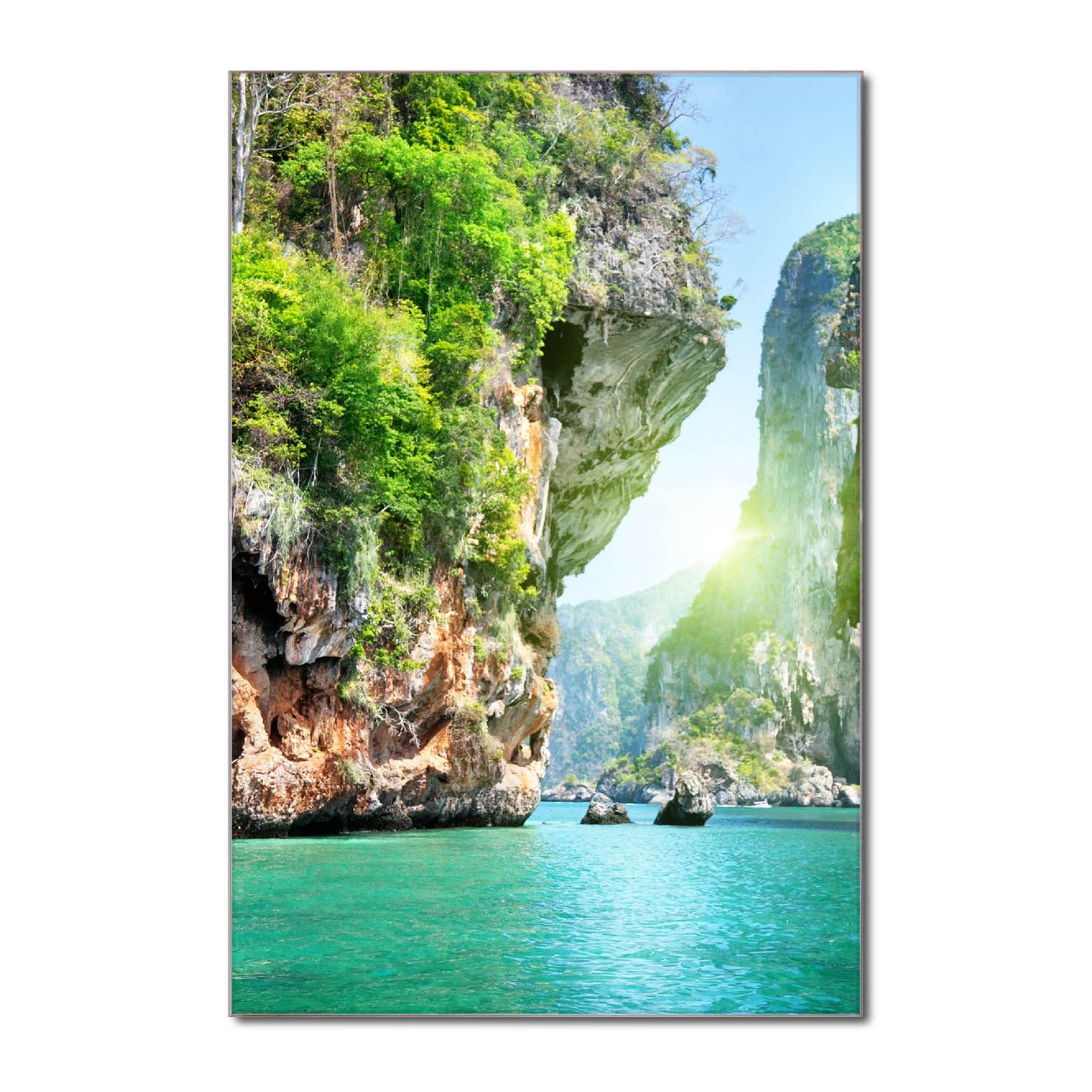 Unsere brillanten Glasbilder im Hochformat von banjado mit Motiv Versteckte Bucht sind der absolute Hingucker! Unsere Banjado Glasbilder sind sehr begehrt, weil sie top verarbeitet sind und sich ganz leicht montieren lassen. Schon mit wenigen Handgriffen hängen sie an der Wand und strahlen mit höchster brillianz. Durch die Ramenlose Herstellung schwebt das Echtglasbild förmlich an der Wand. Das Motiv erscheint besonders ausdrucksstark und hochwertig und ist hinter dem Echtglas geschützt.