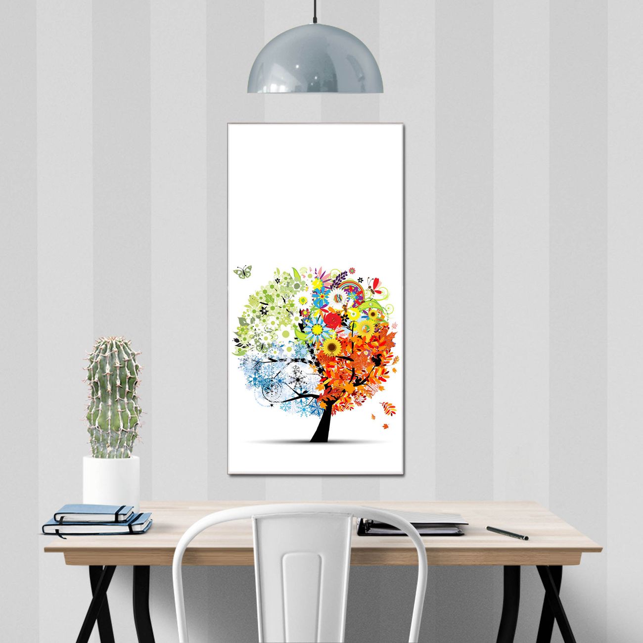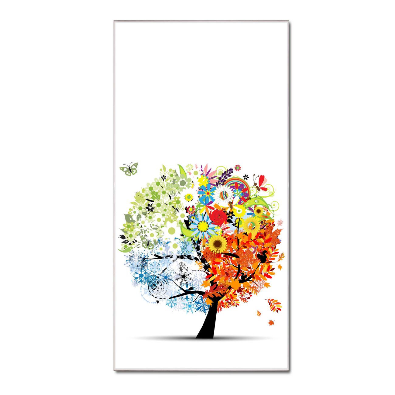 Material  4mm Sicherheitsglas mit Metallrückwand Eigenschaften  farbbrillant, kratzfest, rahmenlos Maße  50x100x0,6cm, 7,50 kg schwer Motiv  Nummer 11067 Vier Jahreszeiten