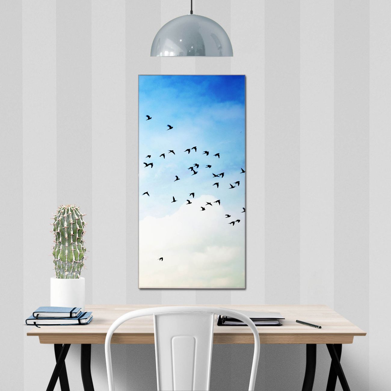 Unsere brillanten Glasbilder im Hochformat von banjado mit Motiv Vögel am Himmel 2 sind der absolute Hingucker! Unsere Banjado Glasbilder sind sehr begehrt, weil sie top verarbeitet sind und sich ganz leicht montieren lassen. Schon mit wenigen Handgriffen hängen sie an der Wand und strahlen mit höchster brillianz. Durch die Ramenlose Herstellung schwebt das Echtglasbild förmlich an der Wand. Das Motiv erscheint besonders ausdrucksstark und hochwertig und ist hinter dem Echtglas geschützt.