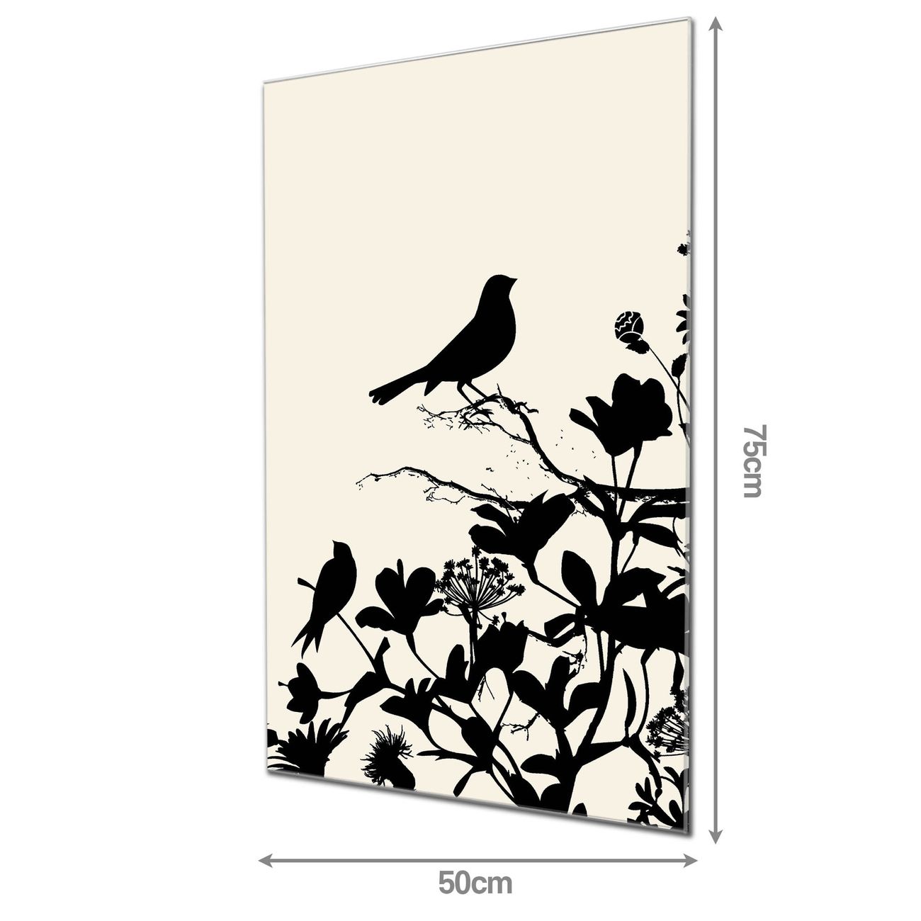 Material  4mm Sicherheitsglas mit Metallrückwand Eigenschaften  farbbrillant, kratzfest, rahmenlos Maße  50x75x0,6cm, 5,63 kg schwer Motiv  Nummer 12070 Vögel Schattenriß