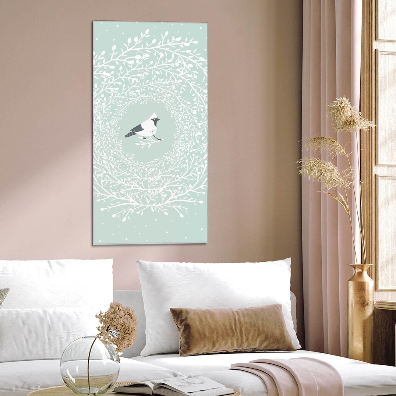 Brillantes Glasbild im Hochformat