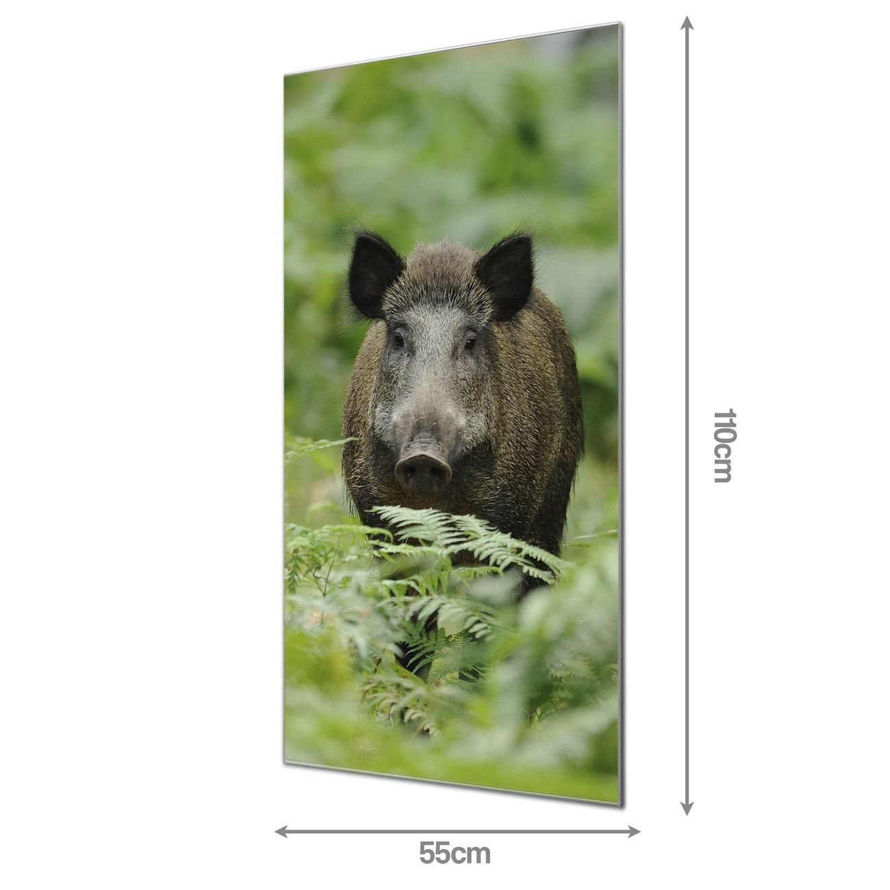 Unsere brillanten Glasbilder im Hochformat von banjado mit Motiv Wildschwein sind der absolute Hingucker! Unsere Banjado Glasbilder sind sehr begehrt, weil sie top verarbeitet sind und sich ganz leicht montieren lassen. Schon mit wenigen Handgriffen hängen sie an der Wand und strahlen mit höchster brillianz. Durch die Ramenlose Herstellung schwebt das Echtglasbild förmlich an der Wand. Das Motiv erscheint besonders ausdrucksstark, hochwertig und ist hinter dem Echtglas geschützt.