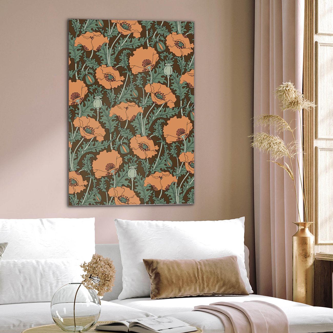 Brillantes Glasbild im Hochformat Zeichnung Mohn