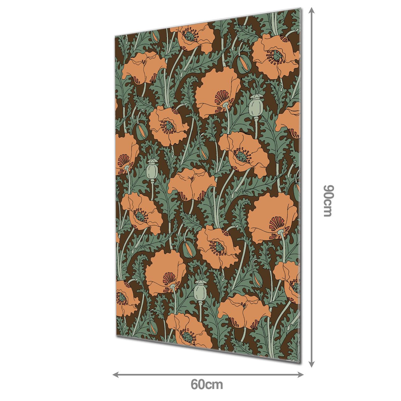 Material  4mm Sicherheitsglas mit Metallrückwand Eigenschaften  farbbrillant, kratzfest, rahmenlos Maße  60x90x0,6cm, 8,10 kg schwer Motiv  Nummer 11382 Zeichnung Mohn