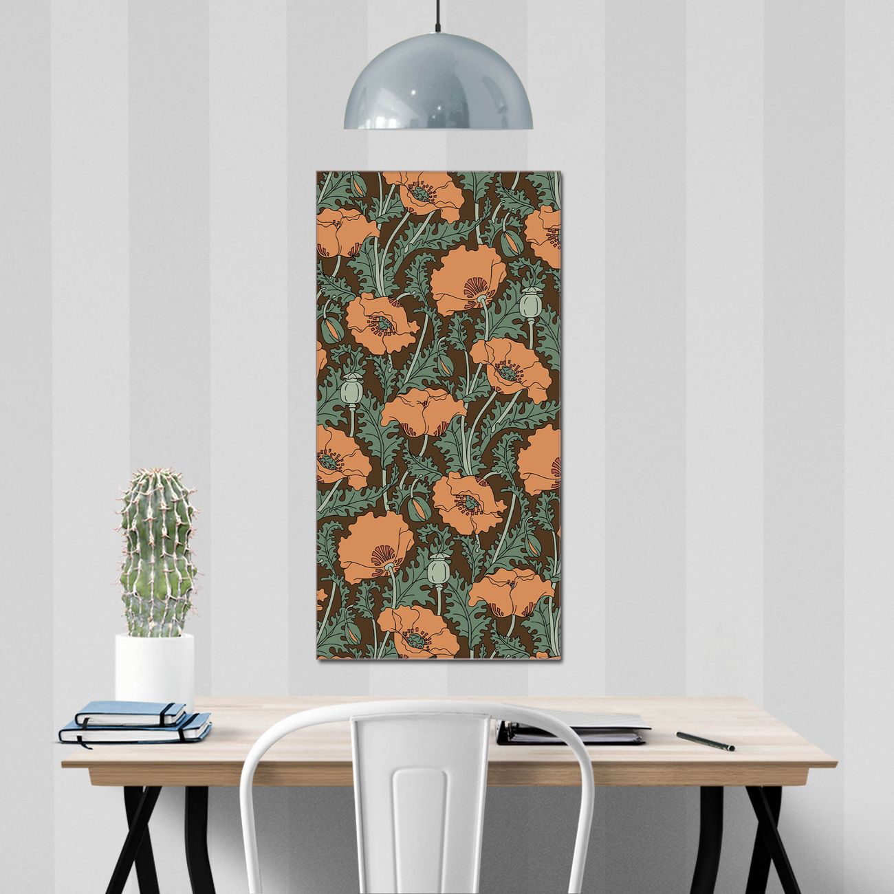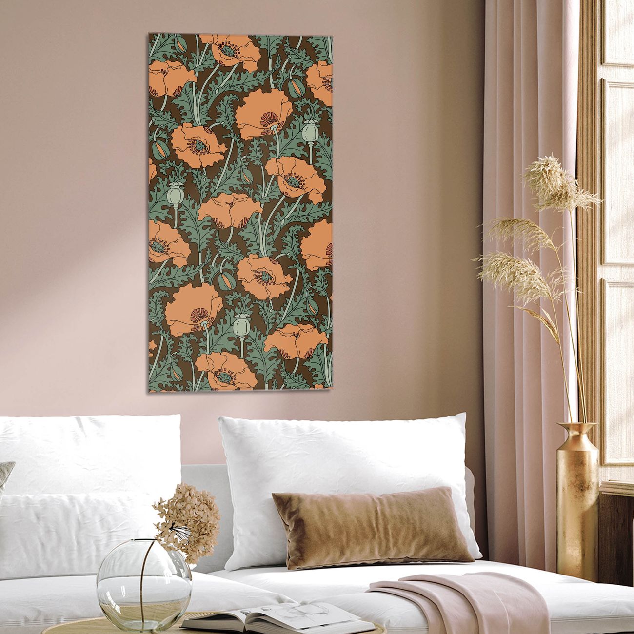Brillantes Glasbild im Hochformat Zeichnung Mohn