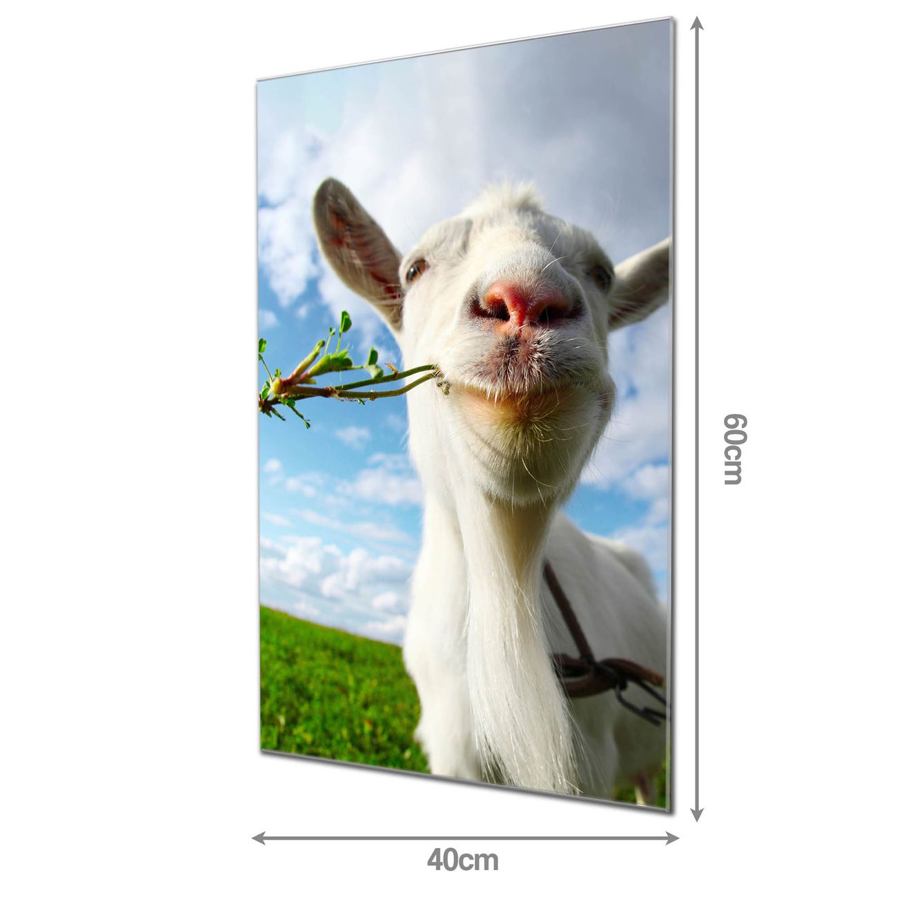 Unsere brillanten Glasbilder im Hochformat von banjado mit Motiv Ziege 2 sind der absolute Hingucker! Unsere Banjado Glasbilder sind sehr begehrt, weil sie top verarbeitet sind und sich ganz leicht montieren lassen. Schon mit wenigen Handgriffen hängen sie an der Wand und strahlen mit höchster brillianz. Durch die Ramenlose Herstellung schwebt das Echtglasbild förmlich an der Wand. Das Motiv erscheint besonders ausdrucksstark und hochwertig und ist hinter dem Echtglas geschützt.