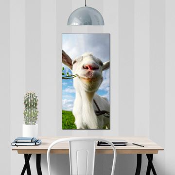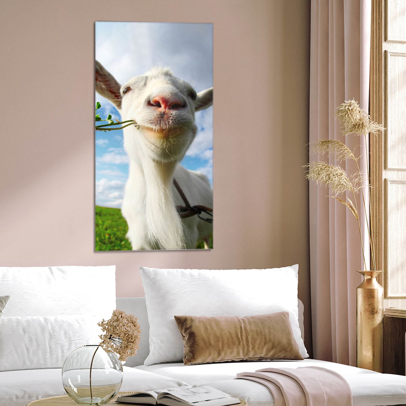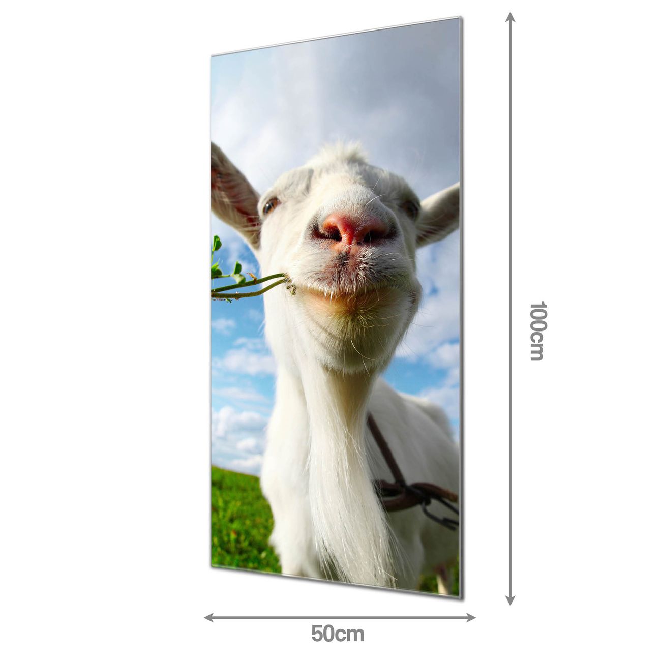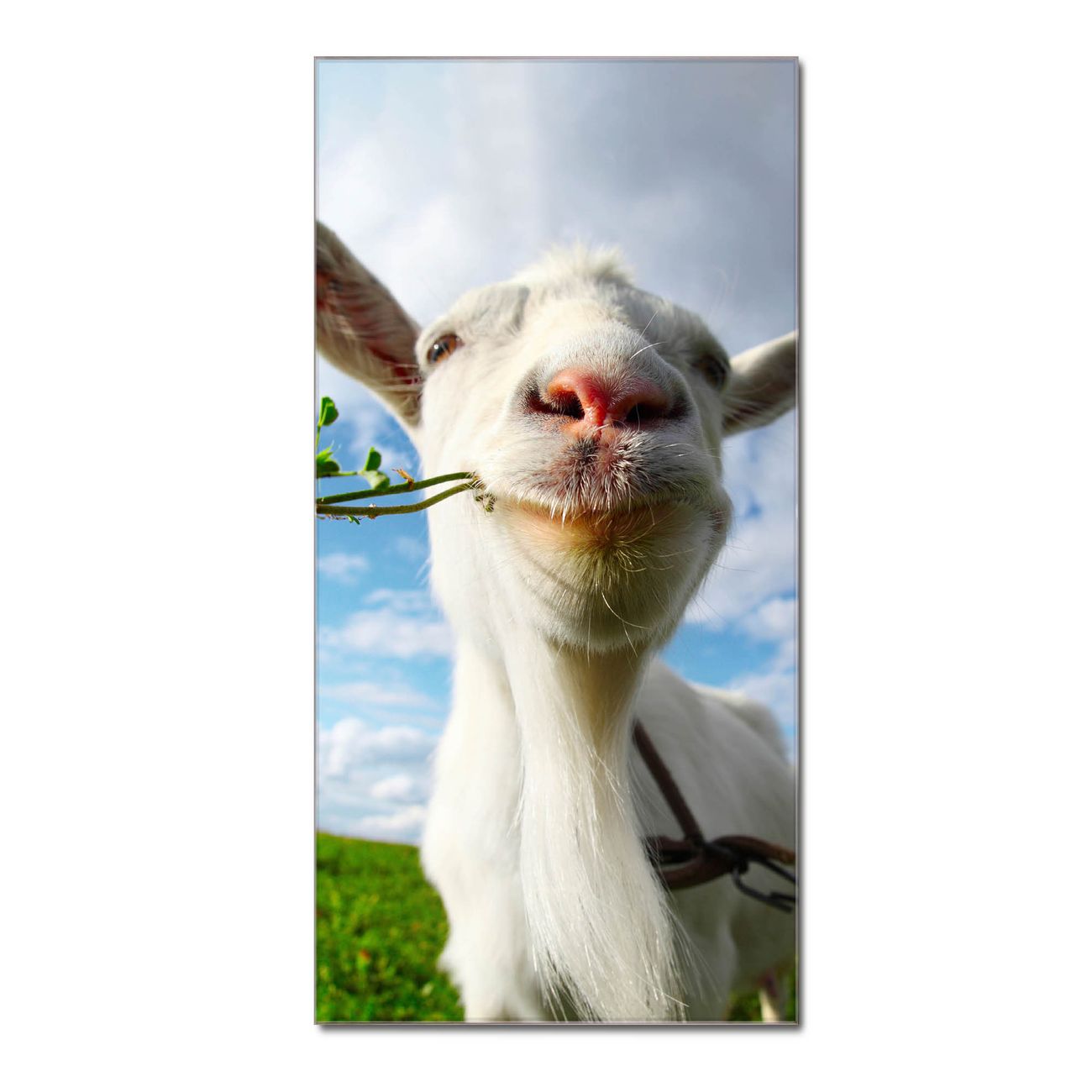 Unsere brillanten Glasbilder im Hochformat von banjado mit Motiv Ziege 2 sind der absolute Hingucker! Unsere Banjado Glasbilder sind sehr begehrt, weil sie top verarbeitet sind und sich ganz leicht montieren lassen. Schon mit wenigen Handgriffen hängen sie an der Wand und strahlen mit höchster brillianz. Durch die Ramenlose Herstellung schwebt das Echtglasbild förmlich an der Wand. Das Motiv erscheint besonders ausdrucksstark und hochwertig und ist hinter dem Echtglas geschützt.