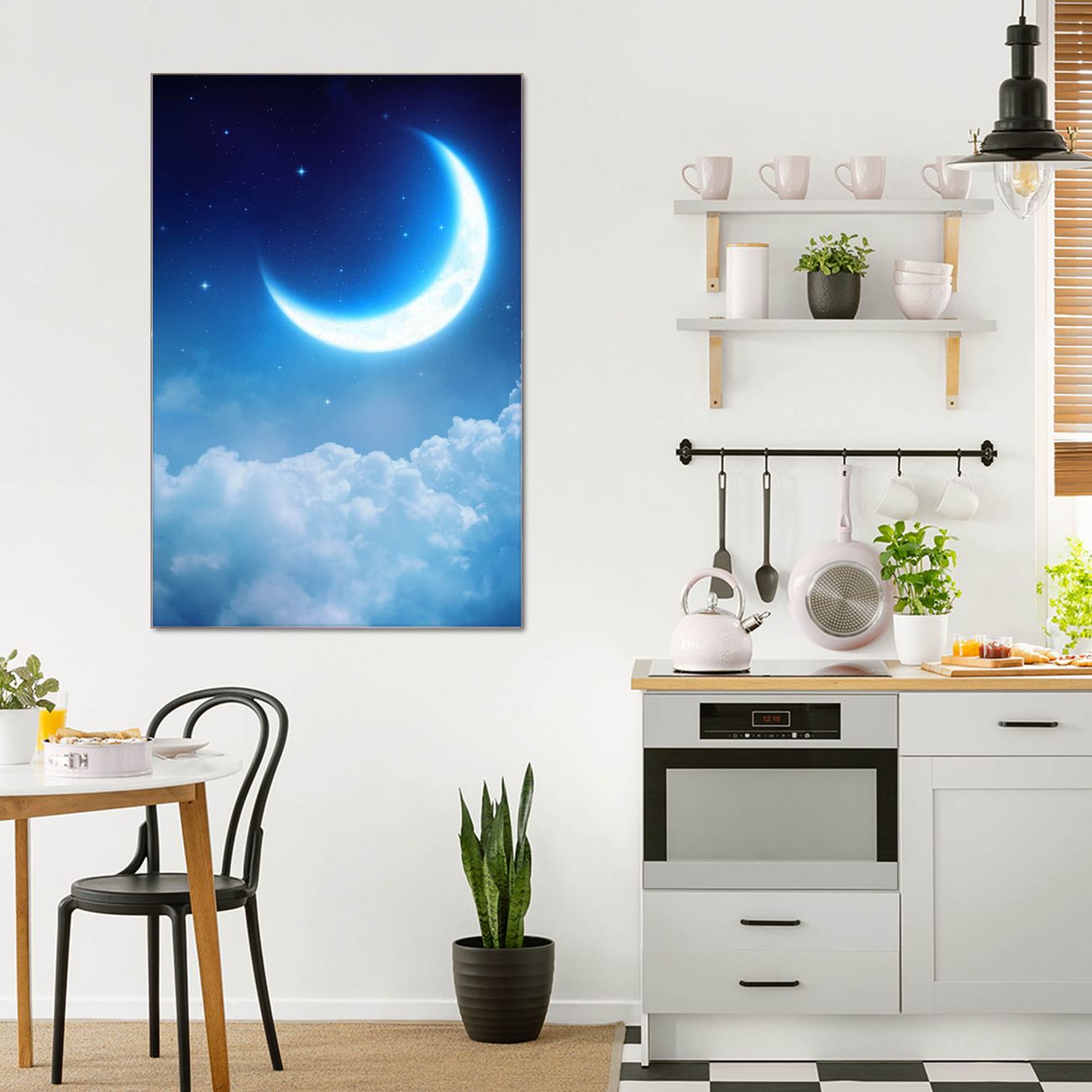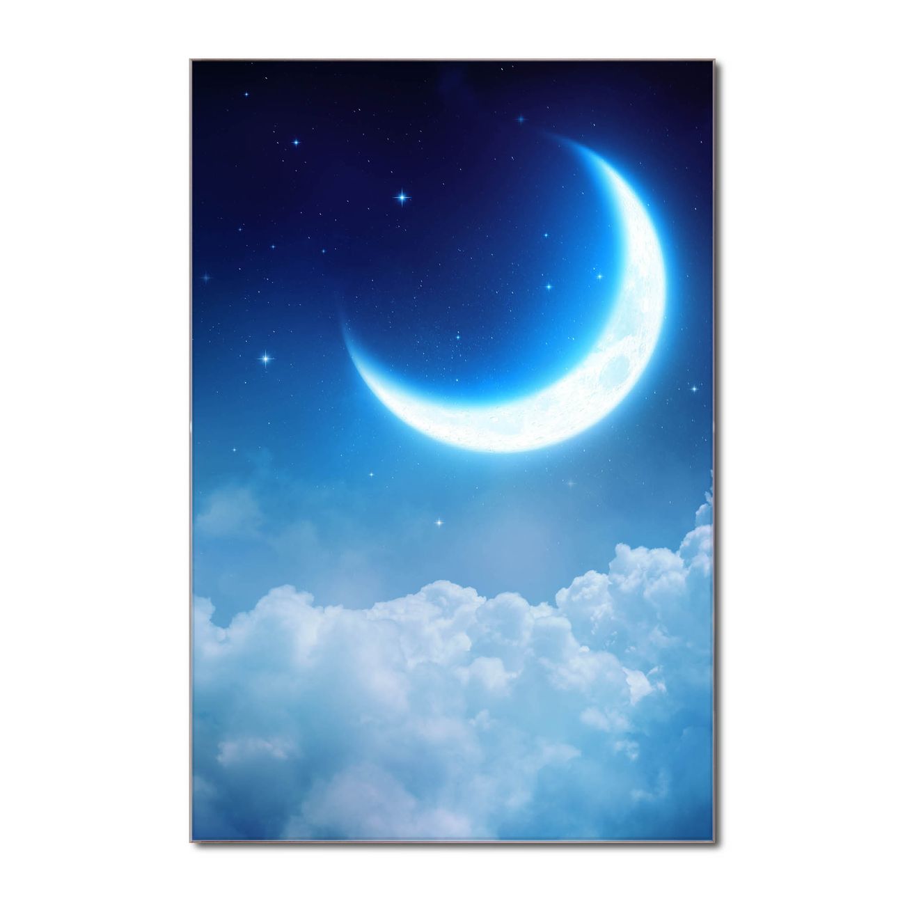 Brillantes Glasbild im Hochformat zunehmender Mond