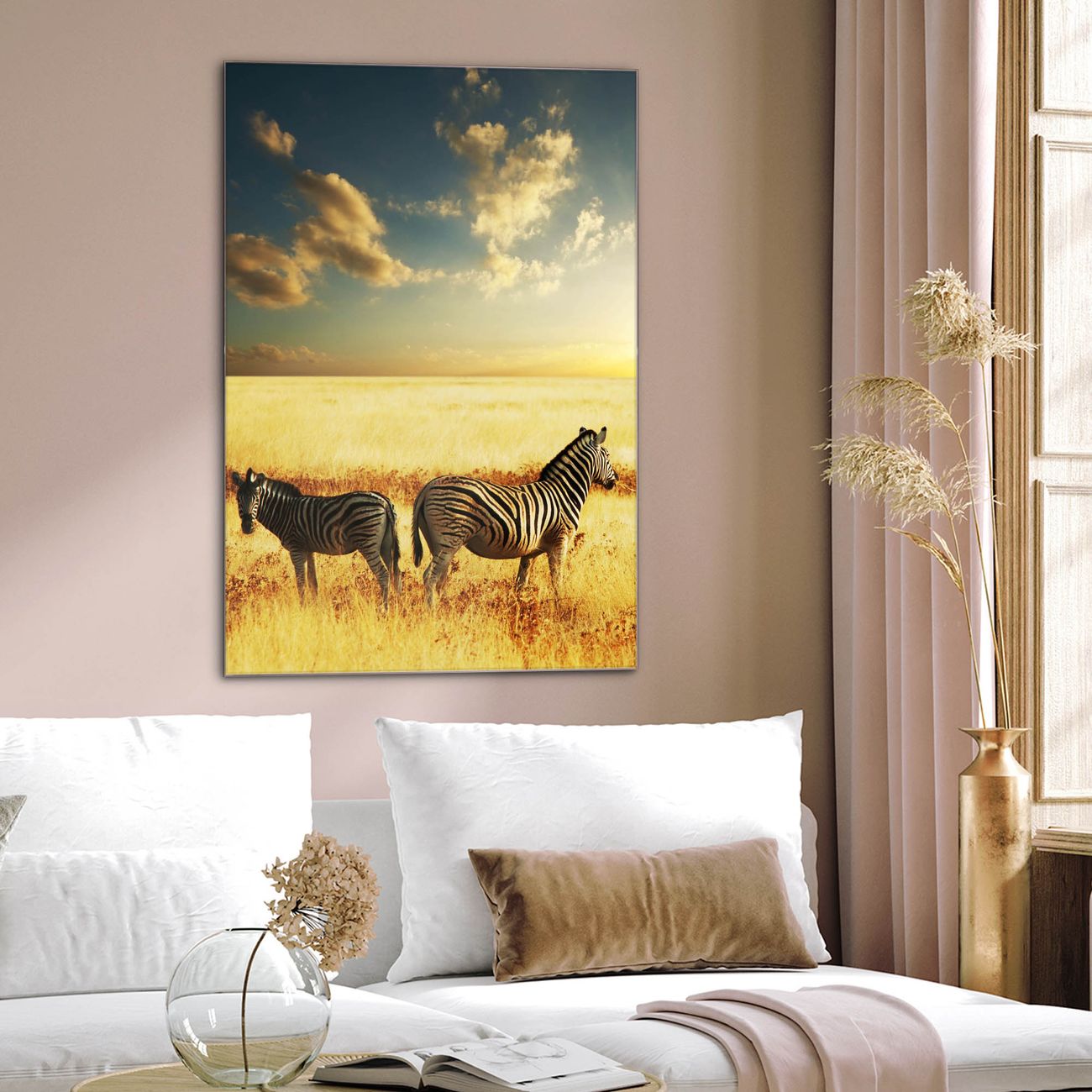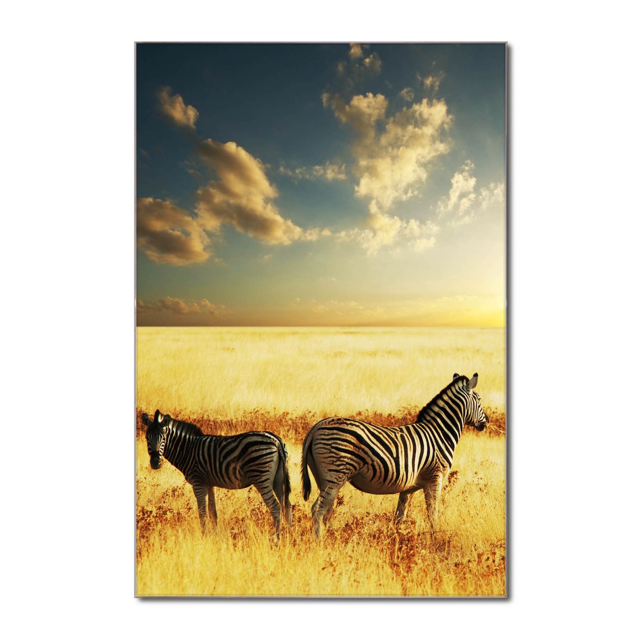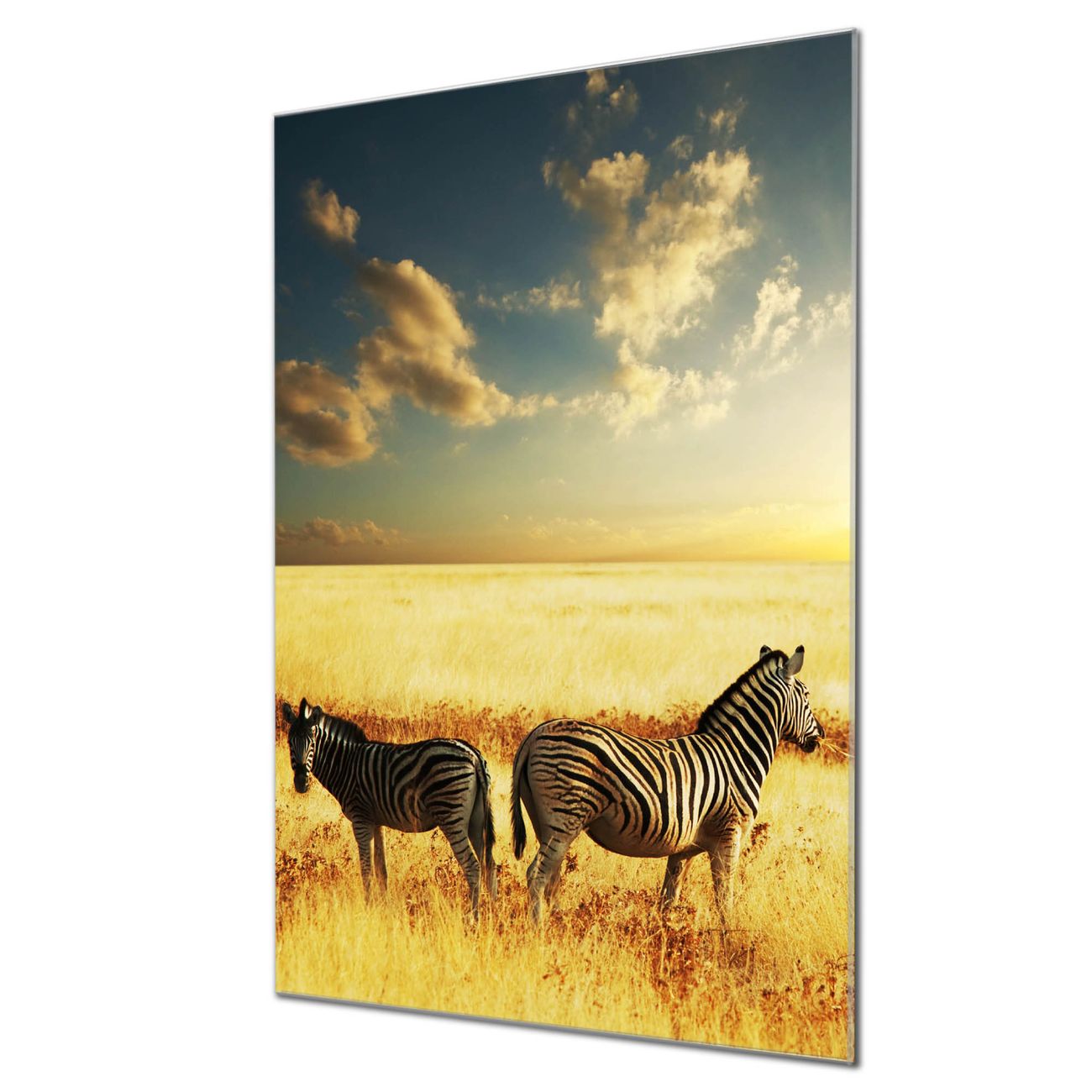 Brillantes Glasbild im Hochformat Zwei Zebras