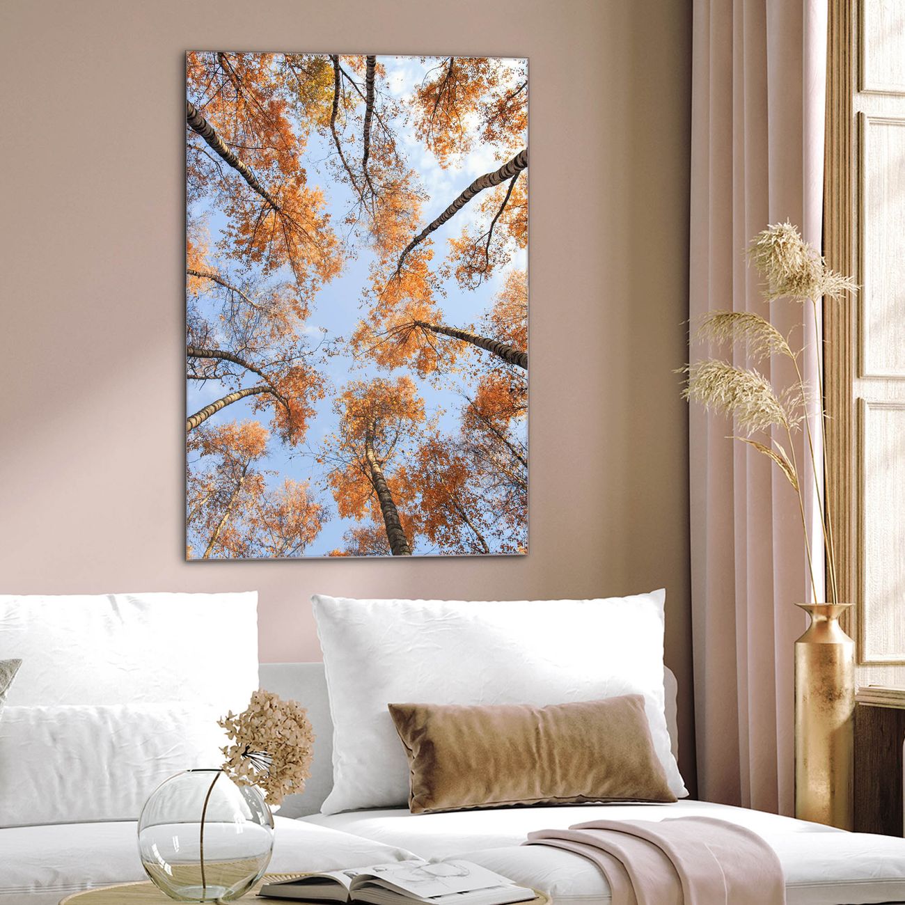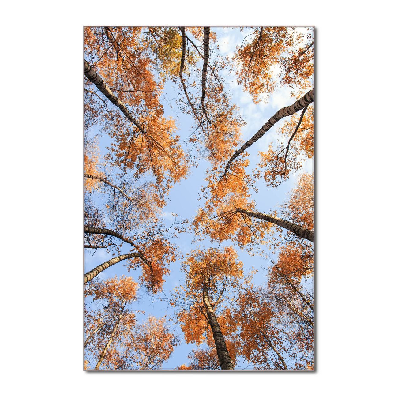 Brillantes Glasbild im Hochformat Zwischen Bäumen 4