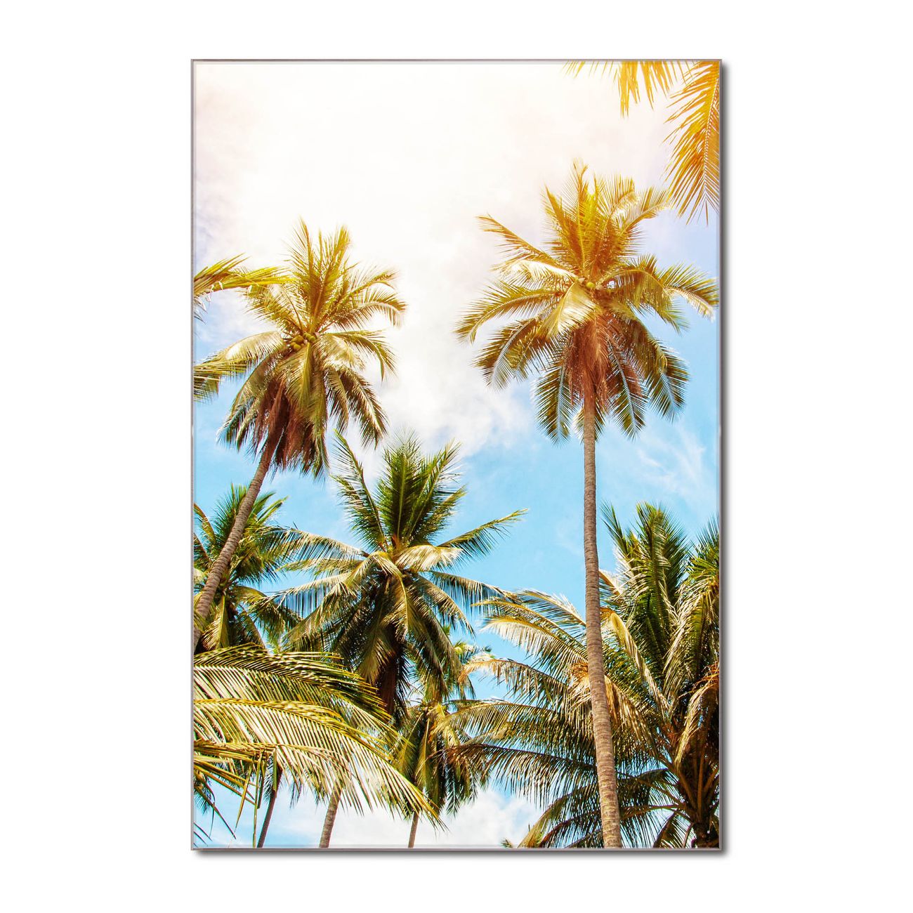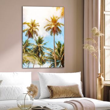 Brillantes Glasbild im Hochformat Zwischen Palmen