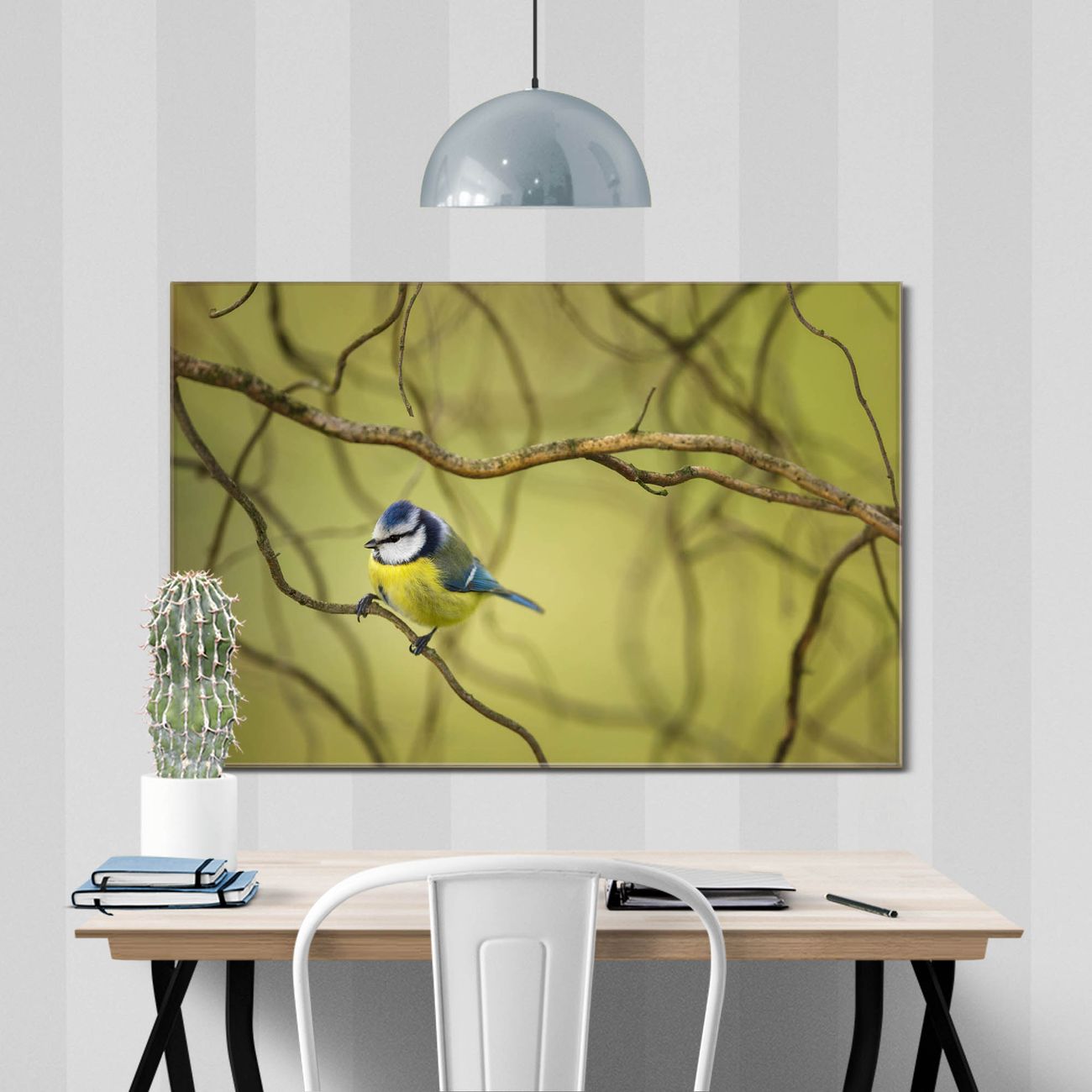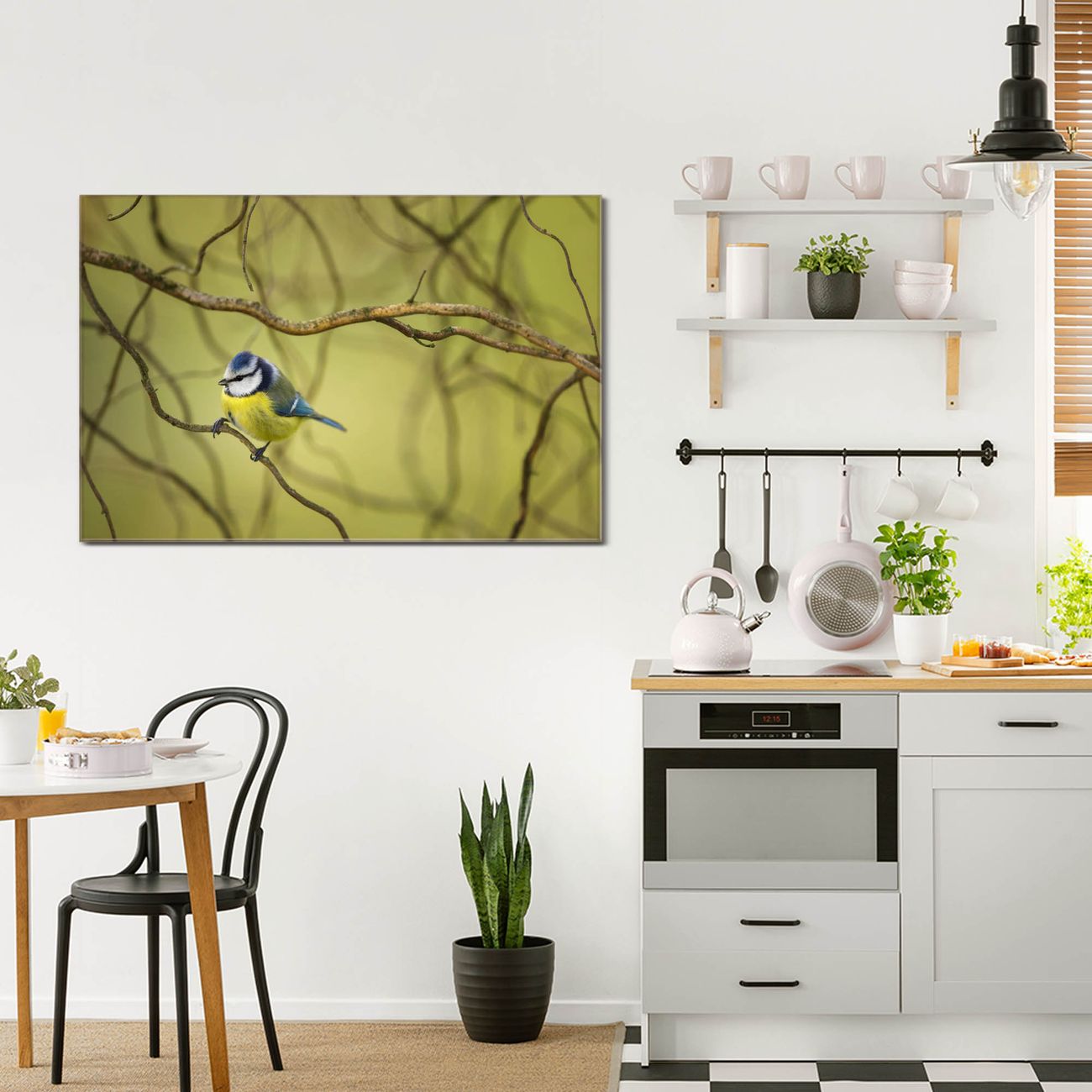 Einzigartiges Wandbild im Querformat Blaumeise im Baum