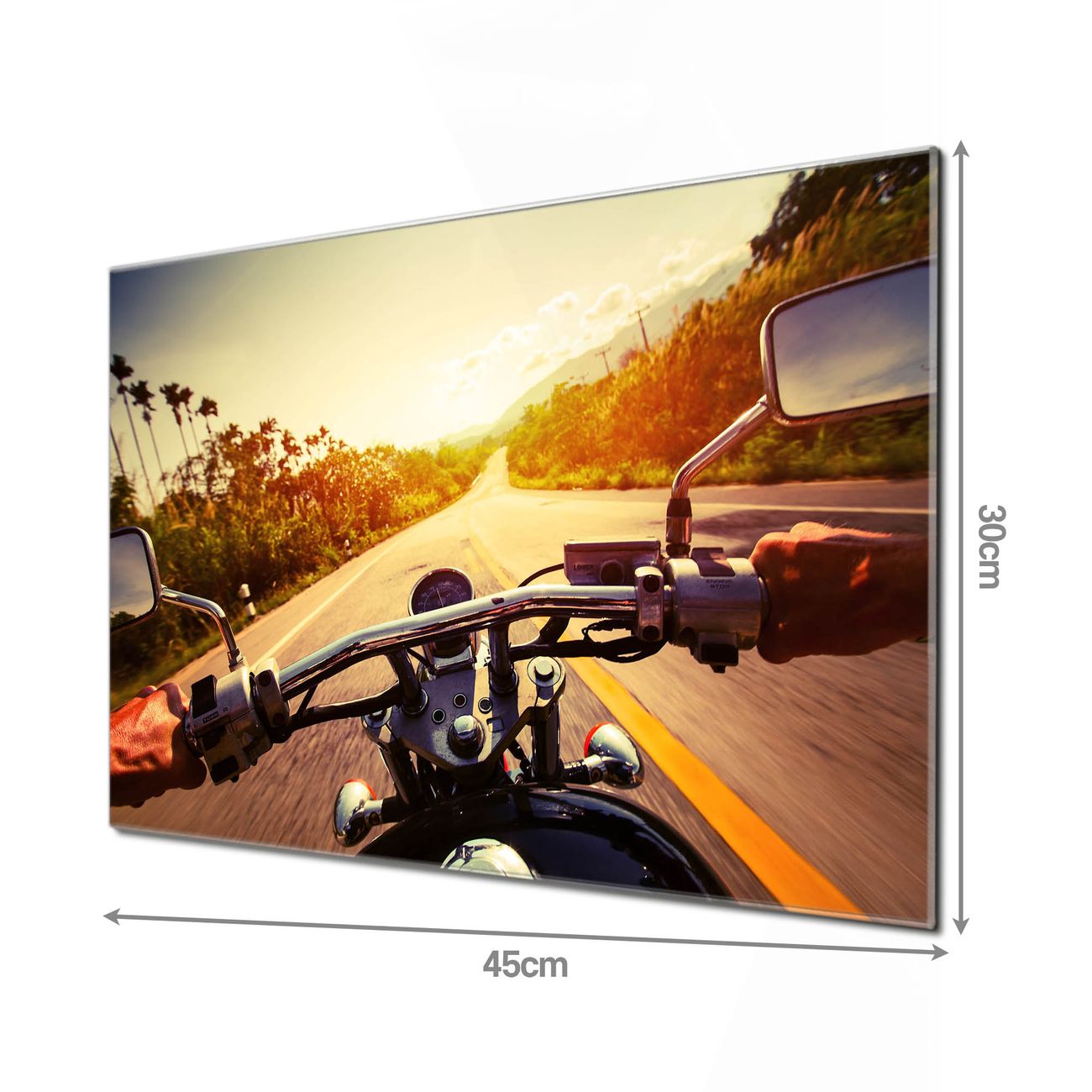 Unsere einzigartigen Glasbilder im Querformat von banjado mit Motiv Easy Rider sind der absolute Hingucker! Unsere Banjado Glasbilder sind sehr begehrt, weil sie top verarbeitet sind und sich ganz leicht montieren lassen. Schon mit wenigen Handgriffen hängen sie an der Wand und strahlen mit höchster brillianz. Durch die Ramenlose Herstellung schwebt das Echtglasbild förmlich an der Wand. Das Motiv erscheint besonders ausdrucksstark und hochwertig und ist hinter dem Echtglas geschützt.