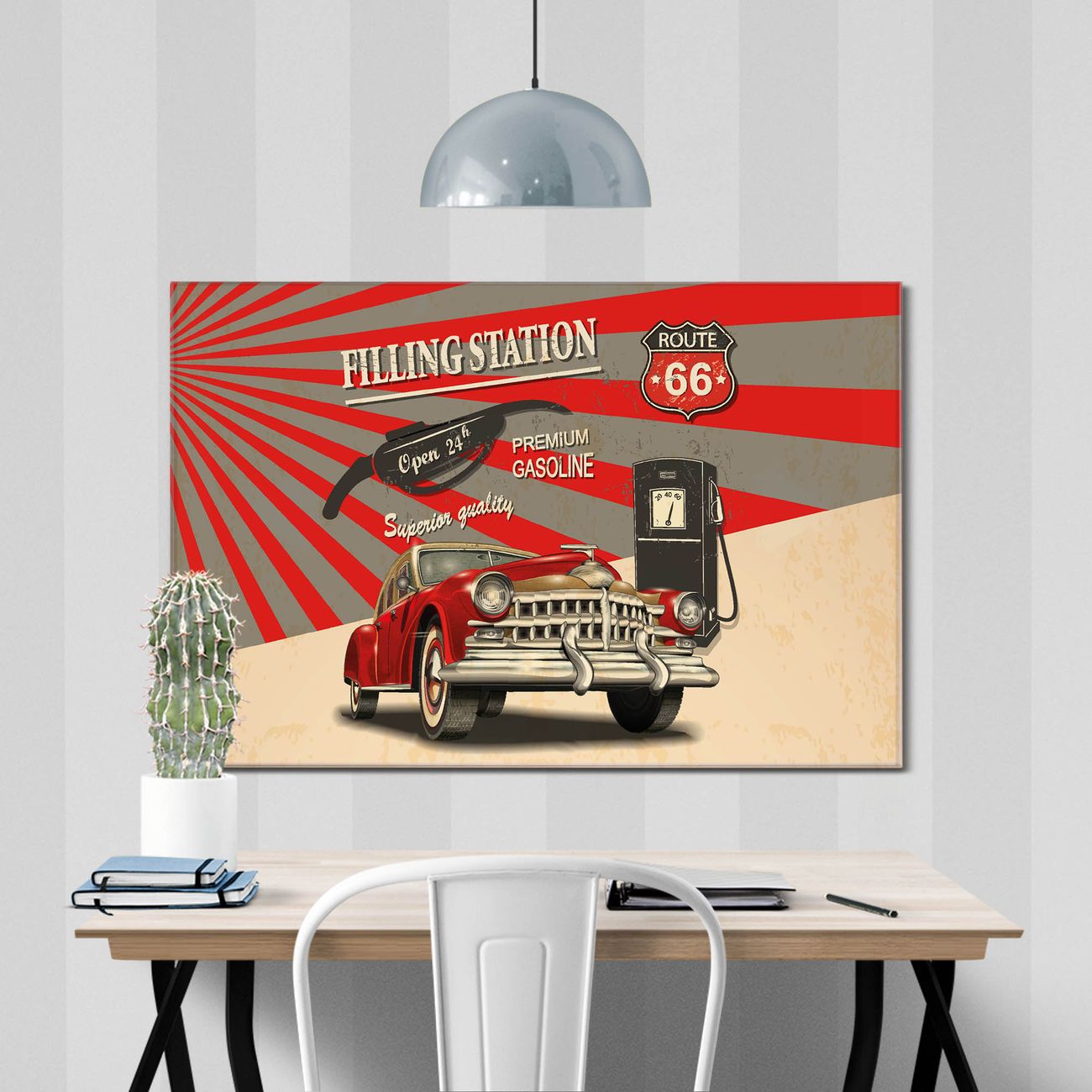 Unsere einzigartigen Glasbilder im Querformat von banjado mit Motiv Filling Station sind der absolute Hingucker! Unsere Banjado Glasbilder sind sehr begehrt, weil sie top verarbeitet sind und sich ganz leicht montieren lassen. Schon mit wenigen Handgriffen hängen sie an der Wand und strahlen mit höchster brillianz. Durch die Ramenlose Herstellung schwebt das Echtglasbild förmlich an der Wand. Das Motiv erscheint besonders ausdrucksstark und hochwertig und ist hinter dem Echtglas geschützt.