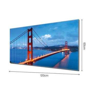 Unsere einzigartigen Glasbilder im Querformat von banjado mit Motiv Golden Gate Bridge sind der absolute Hingucker! Unsere Banjado Glasbilder sind sehr begehrt, weil sie top verarbeitet sind und sich ganz leicht montieren lassen. Schon mit wenigen Handgriffen hängen sie an der Wand und strahlen mit höchster brillianz. Durch die Ramenlose Herstellung schwebt das Echtglasbild förmlich an der Wand. Das Motiv erscheint besonders ausdrucksstark und hochwertig und ist hinter dem Echtglas geschützt.