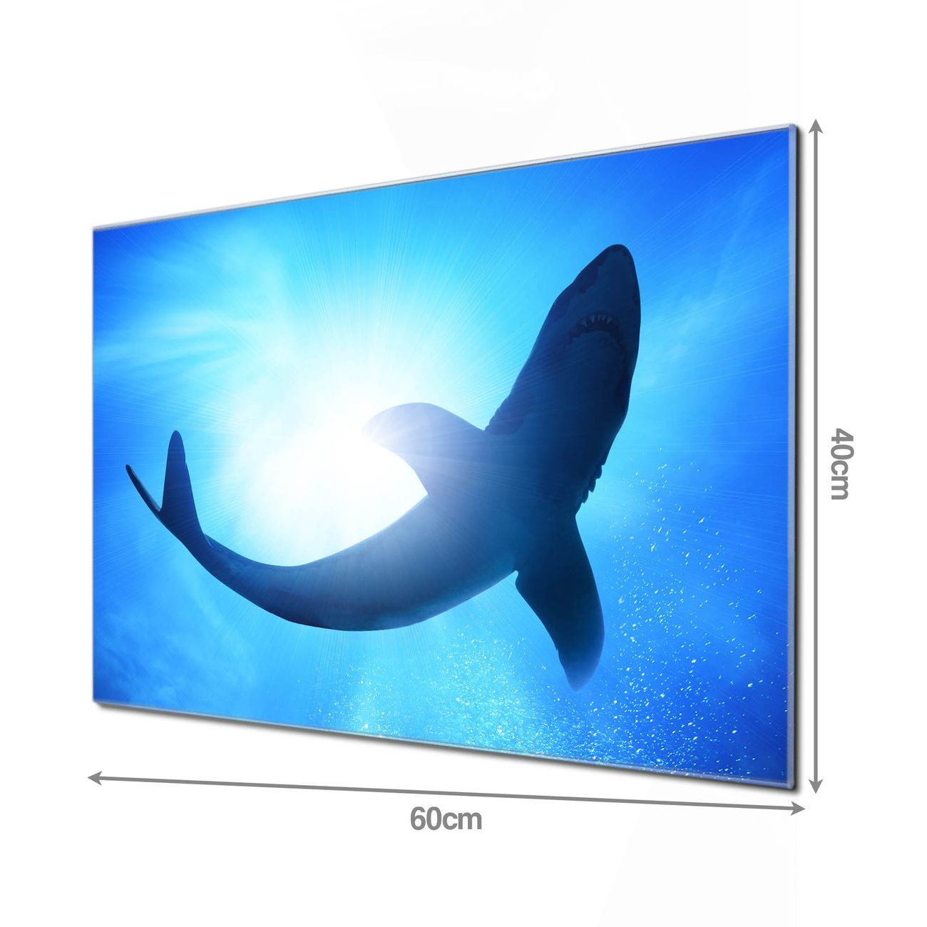 Unsere einzigartigen Glasbilder im Querformat von banjado mit Motiv Hai sind der absolute Hingucker! Unsere Banjado Glasbilder sind sehr begehrt, weil sie top verarbeitet sind und sich ganz leicht montieren lassen. Schon mit wenigen Handgriffen hängen sie an der Wand und strahlen mit höchster brillianz. Durch die Ramenlose Herstellung schwebt das Echtglasbild förmlich an der Wand. Das Motiv erscheint besonders ausdrucksstark und hochwertig und ist hinter dem Echtglas geschützt.
