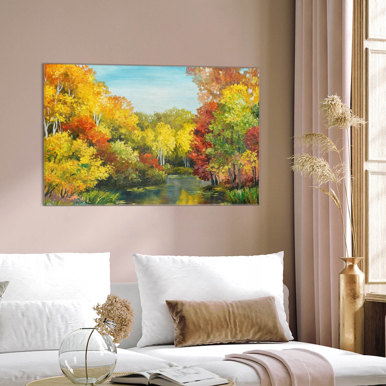 Unsere einzigartigen Glasbilder im Querformat von banjado mit Motiv Kanal Im Herbst sind der absolute Hingucker! Unsere Banjado Glasbilder sind sehr begehrt, weil sie top verarbeitet sind und sich ganz leicht montieren lassen. Schon mit wenigen Handgriffen hängen sie an der Wand und strahlen mit höchster brillianz. Durch die Ramenlose Herstellung schwebt das Echtglasbild förmlich an der Wand. Das Motiv erscheint besonders ausdrucksstark und hochwertig und ist hinter dem Echtglas geschützt.