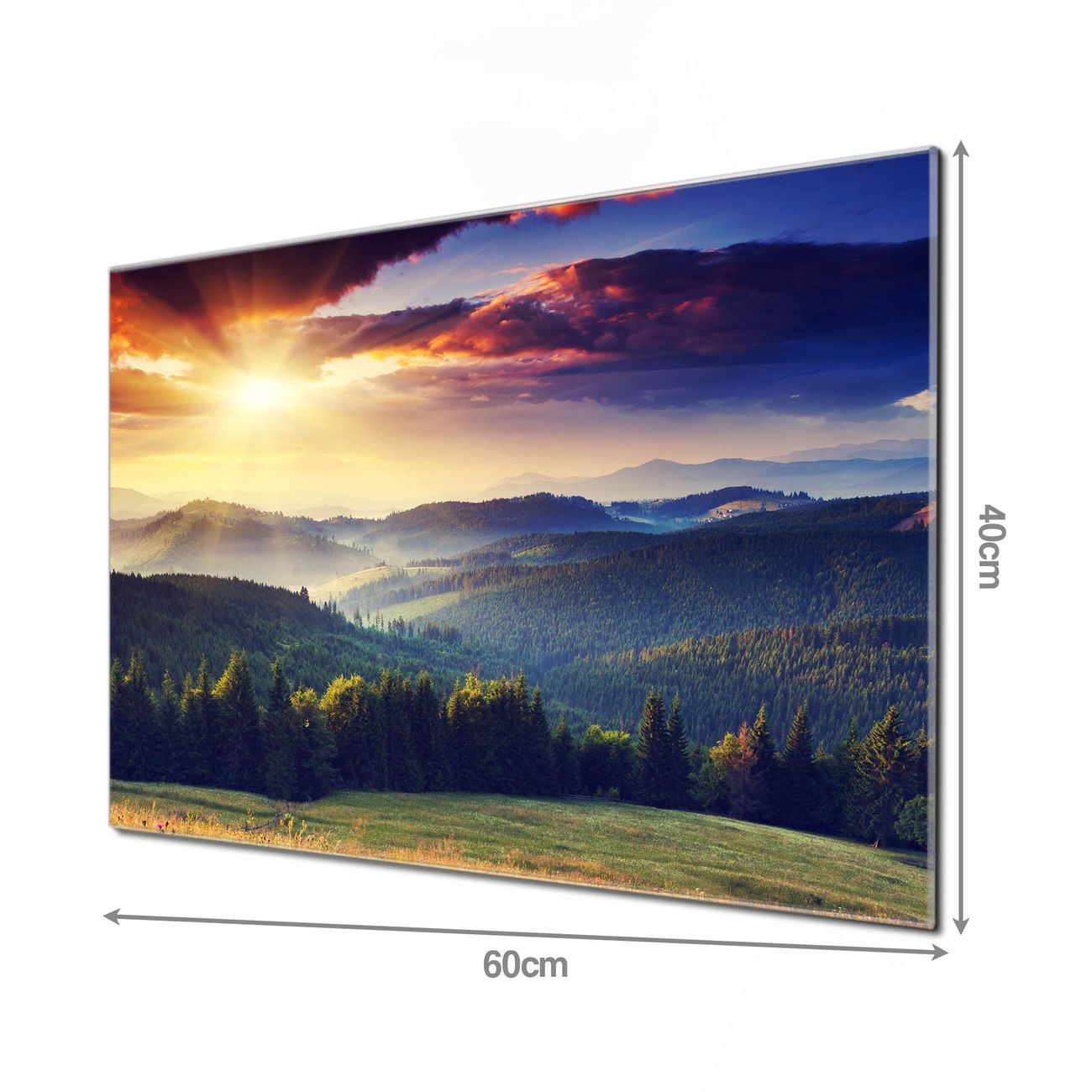 Unsere einzigartigen Glasbilder im Querformat von banjado mit Motiv Karpaten Sonnenuntergang sind der absolute Hingucker! Unsere Banjado Glasbilder sind sehr begehrt, weil sie top verarbeitet sind und sich ganz leicht montieren lassen. Schon mit wenigen Handgriffen hängen sie an der Wand und strahlen mit höchster brillianz. Durch die Ramenlose Herstellung schwebt das Echtglasbild förmlich an der Wand. Das Motiv erscheint besonders ausdrucksstark und hochwertig und ist hinter dem Echtglas geschützt.