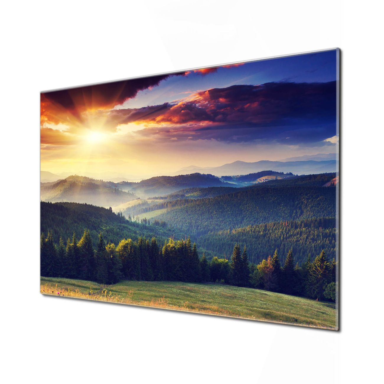Unsere einzigartigen Glasbilder im Querformat von banjado mit Motiv Karpaten Sonnenuntergang sind der absolute Hingucker! Unsere Banjado Glasbilder sind sehr begehrt, weil sie top verarbeitet sind und sich ganz leicht montieren lassen. Schon mit wenigen Handgriffen hängen sie an der Wand und strahlen mit höchster brillianz. Durch die Ramenlose Herstellung schwebt das Echtglasbild förmlich an der Wand. Das Motiv erscheint besonders ausdrucksstark und hochwertig und ist hinter dem Echtglas geschützt.
