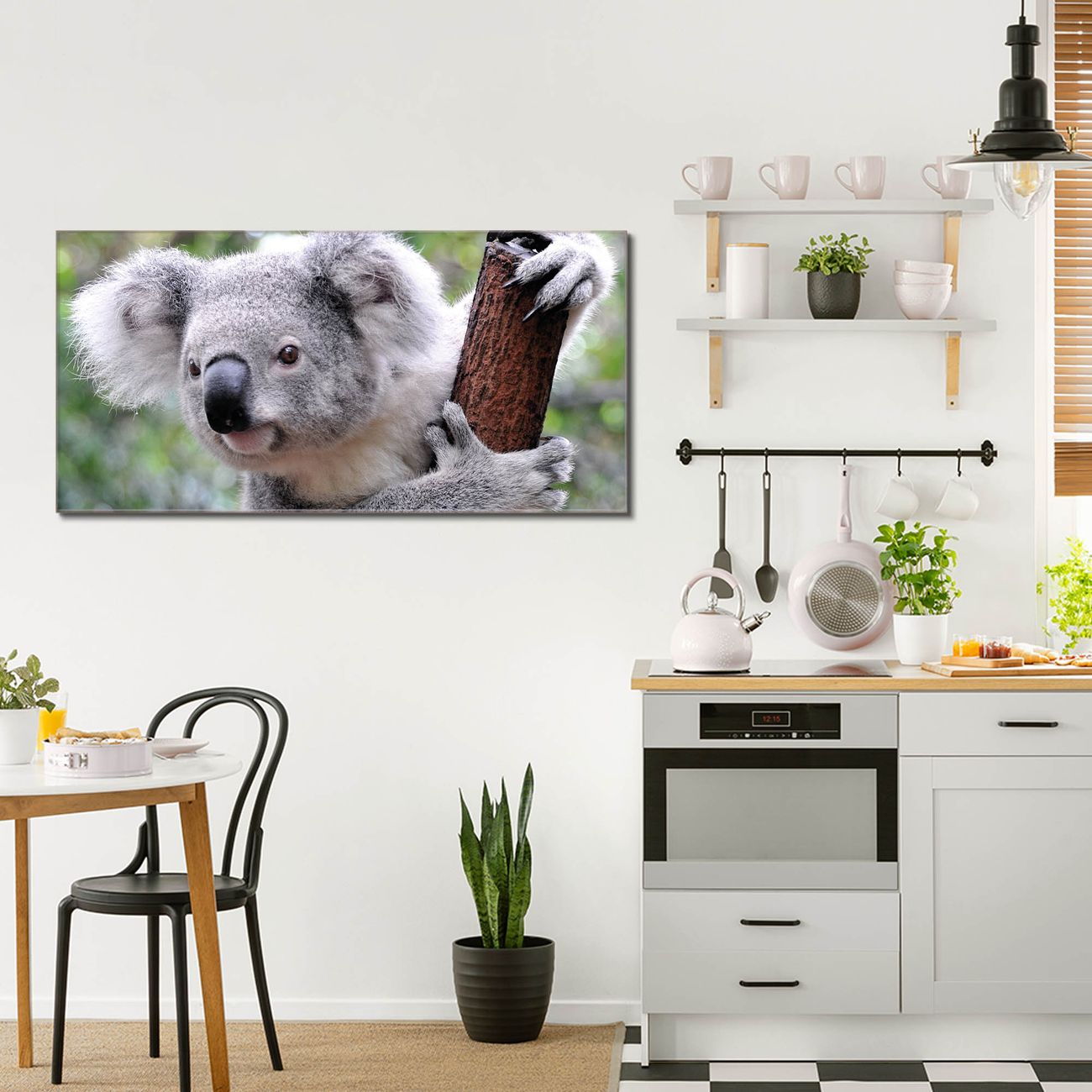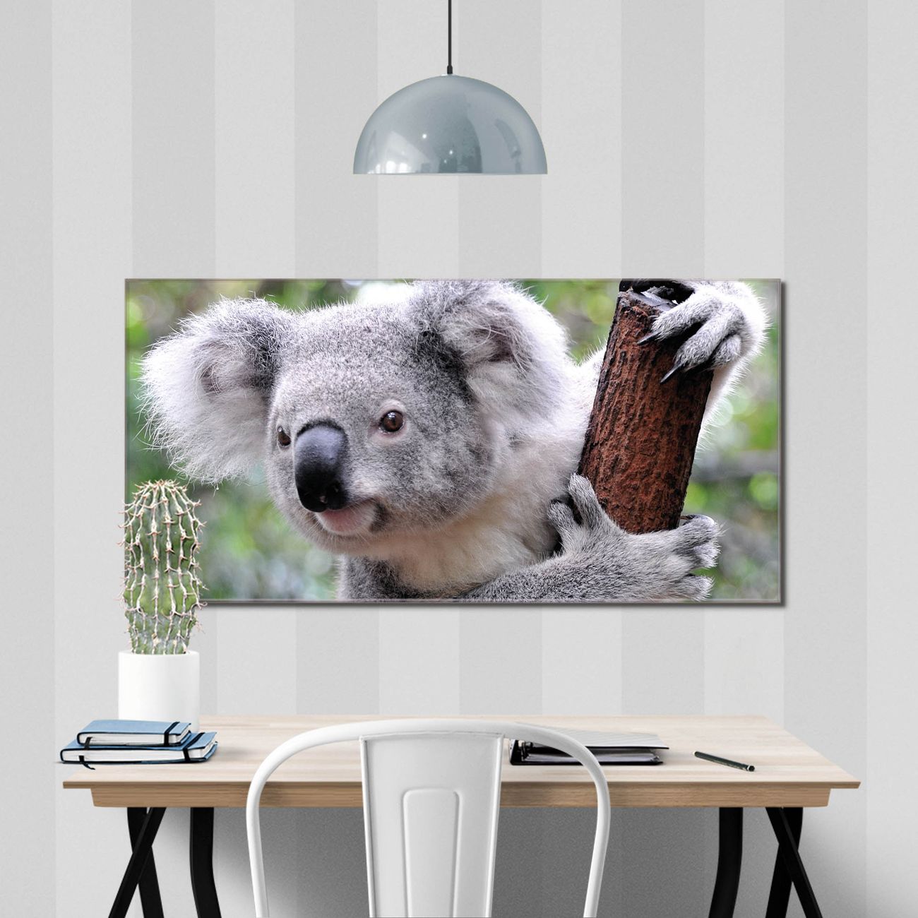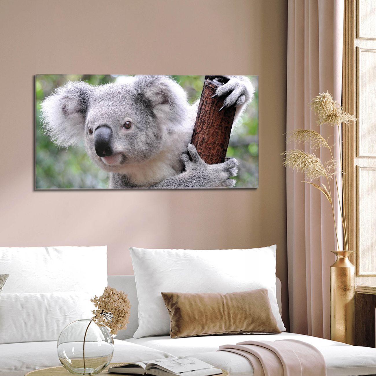 Unsere einzigartigen Glasbilder im Querformat von banjado mit Motiv Koala sind der absolute Hingucker! Unsere Banjado Glasbilder sind sehr begehrt, weil sie top verarbeitet sind und sich ganz leicht montieren lassen. Schon mit wenigen Handgriffen hängen sie an der Wand und strahlen mit höchster brillianz. Durch die Ramenlose Herstellung schwebt das Echtglasbild förmlich an der Wand. Das Motiv erscheint besonders ausdrucksstark und hochwertig und ist hinter dem Echtglas geschützt.