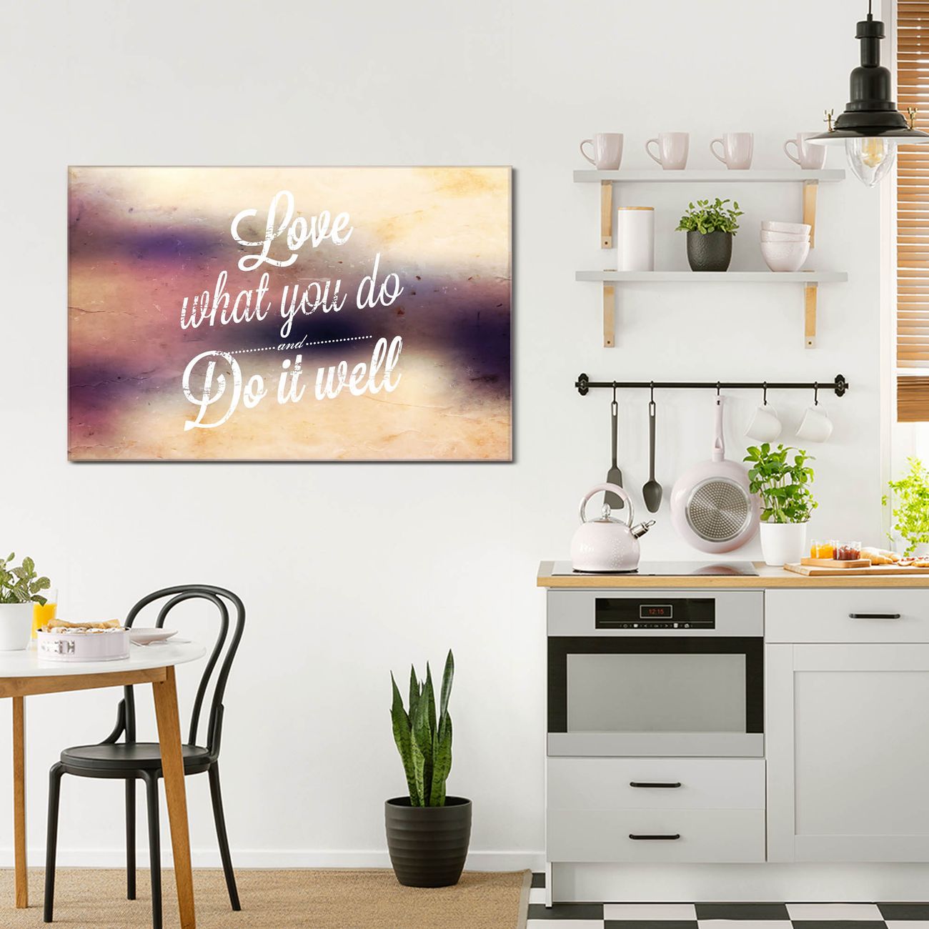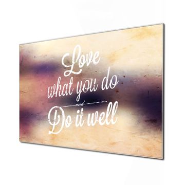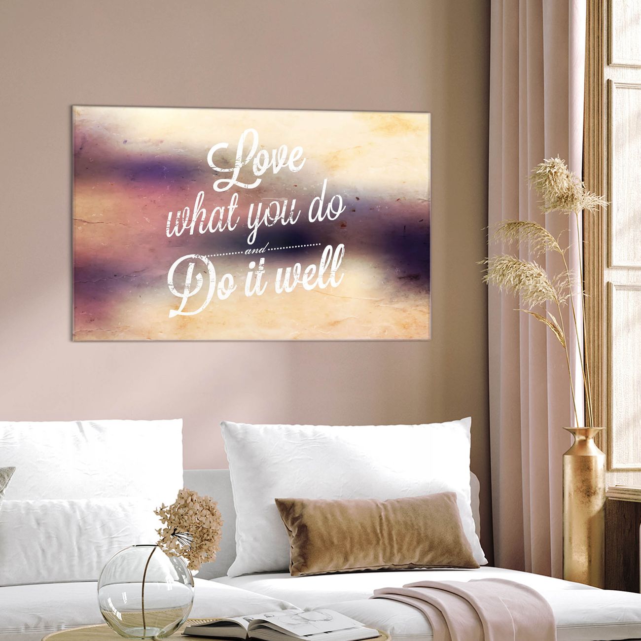 Unsere einzigartigen Glasbilder im Querformat von banjado mit Motiv Love What You Do sind der absolute Hingucker! Unsere Banjado Glasbilder sind sehr begehrt, weil sie top verarbeitet sind und sich ganz leicht montieren lassen. Schon mit wenigen Handgriffen hängen sie an der Wand und strahlen mit höchster brillianz. Durch die Ramenlose Herstellung schwebt das Echtglasbild förmlich an der Wand. Das Motiv erscheint besonders ausdrucksstark und hochwertig und ist hinter dem Echtglas geschützt.
