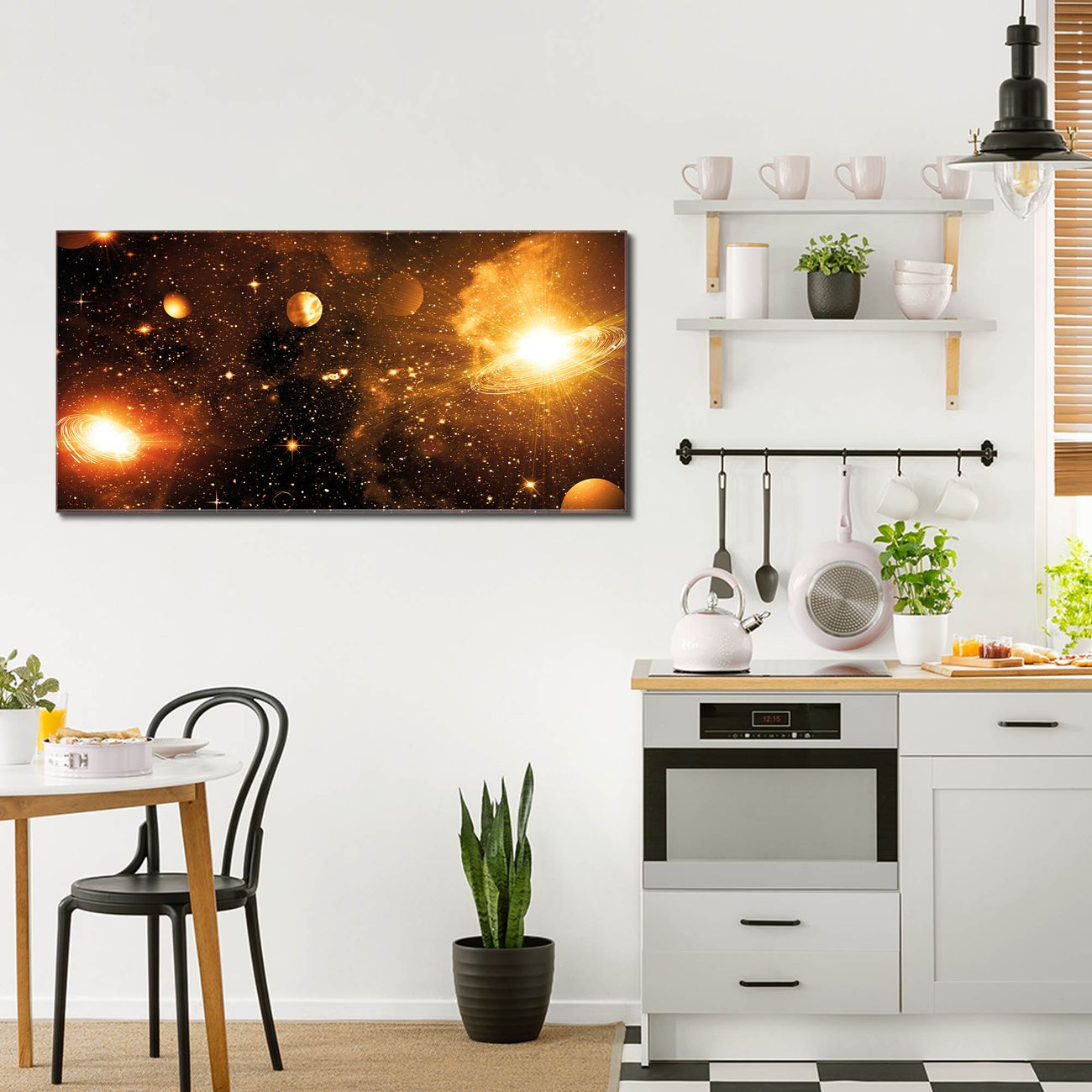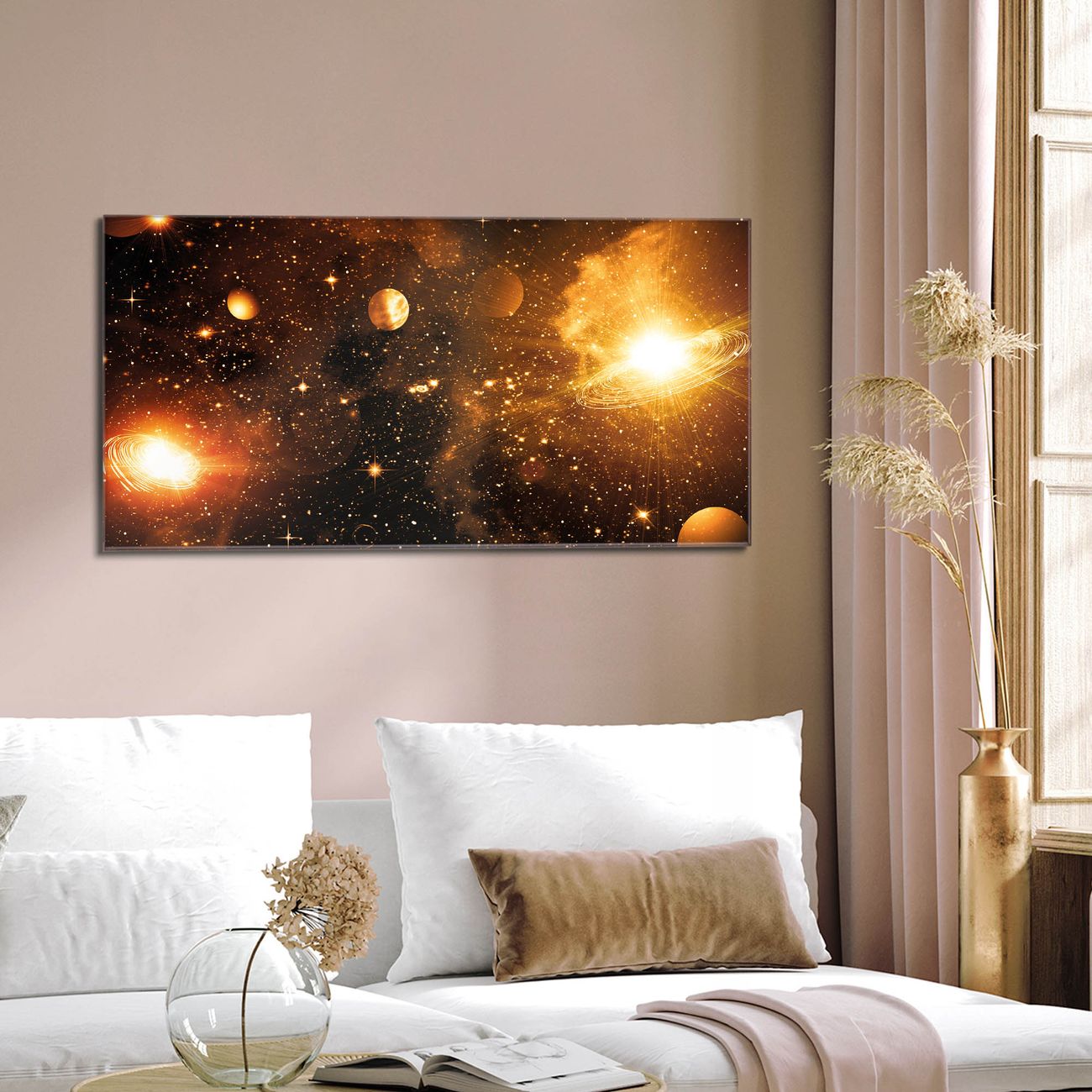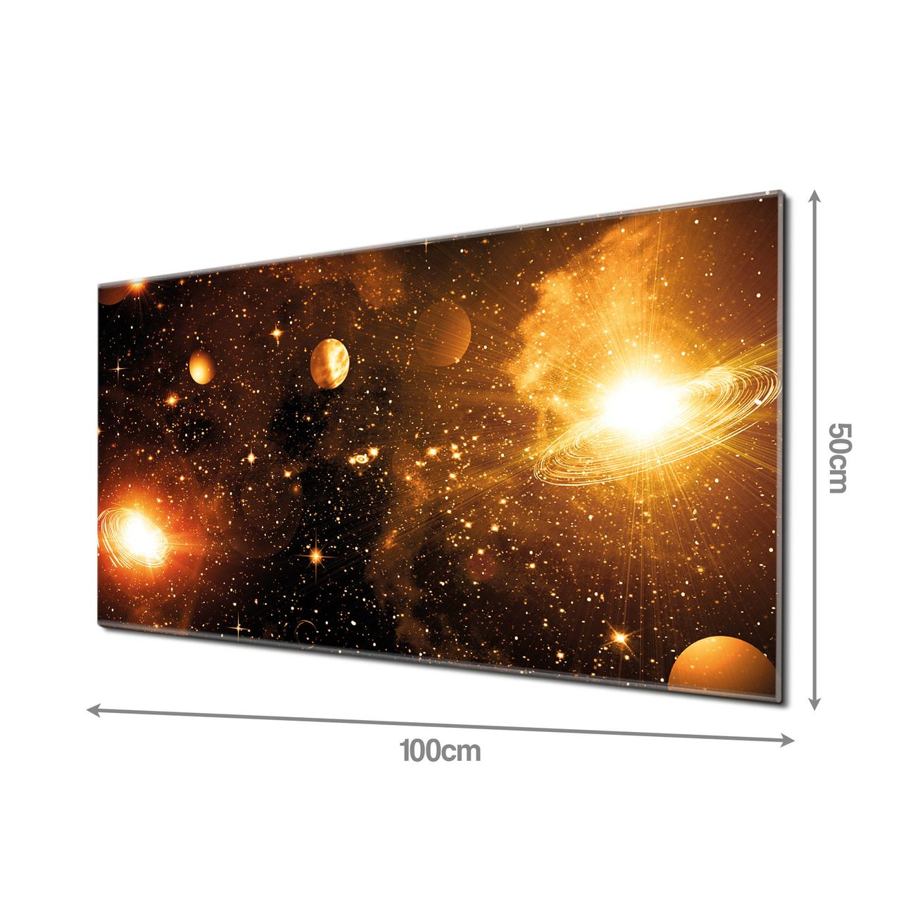 Unsere einzigartigen Glasbilder im Querformat von banjado mit Motiv Outer Space sind der absolute Hingucker! Unsere Banjado Glasbilder sind sehr begehrt, weil sie top verarbeitet sind und sich ganz leicht montieren lassen. Schon mit wenigen Handgriffen hängen sie an der Wand und strahlen mit höchster brillianz. Durch die Ramenlose Herstellung schwebt das Echtglasbild förmlich an der Wand. Das Motiv erscheint besonders ausdrucksstark und hochwertig und ist hinter dem Echtglas geschützt.