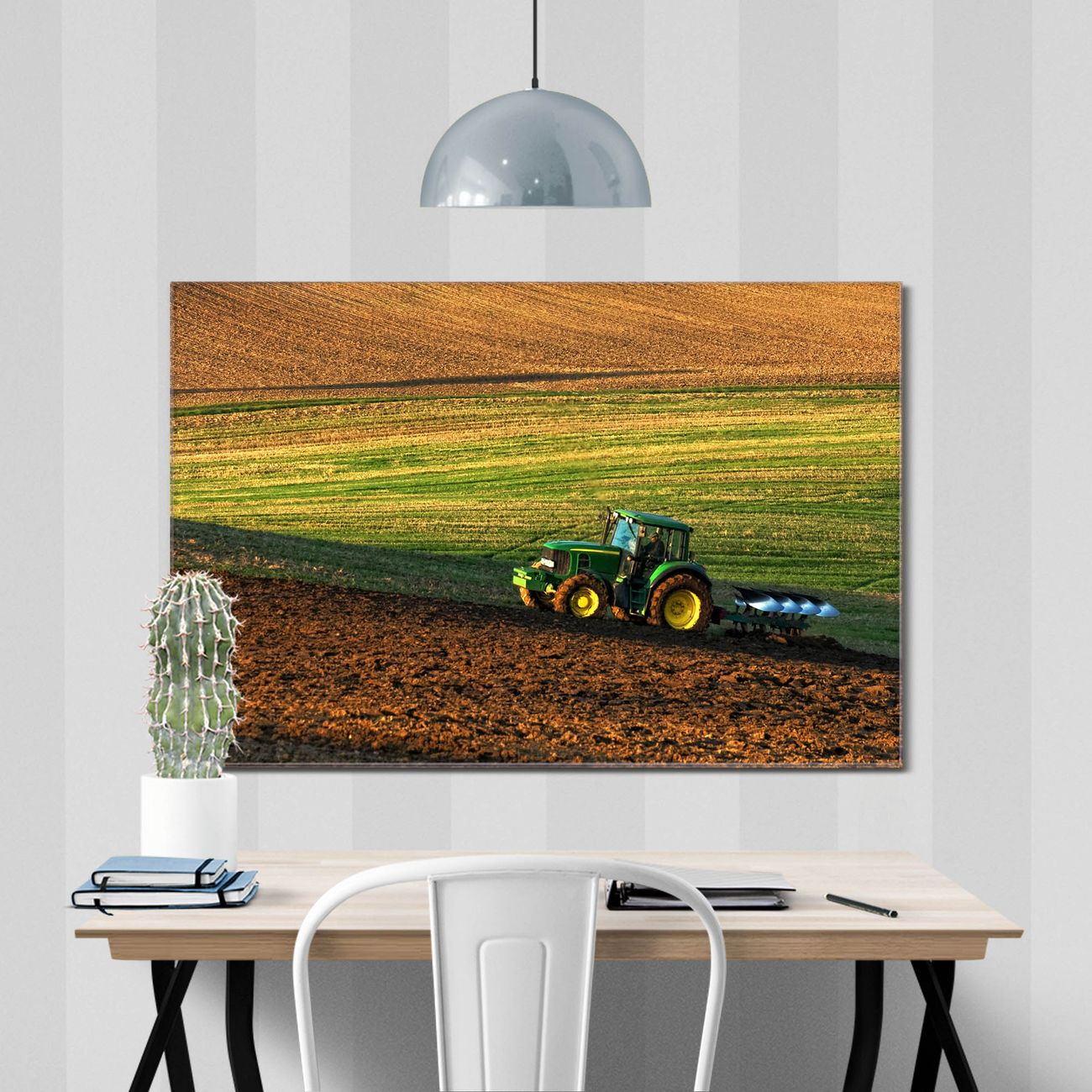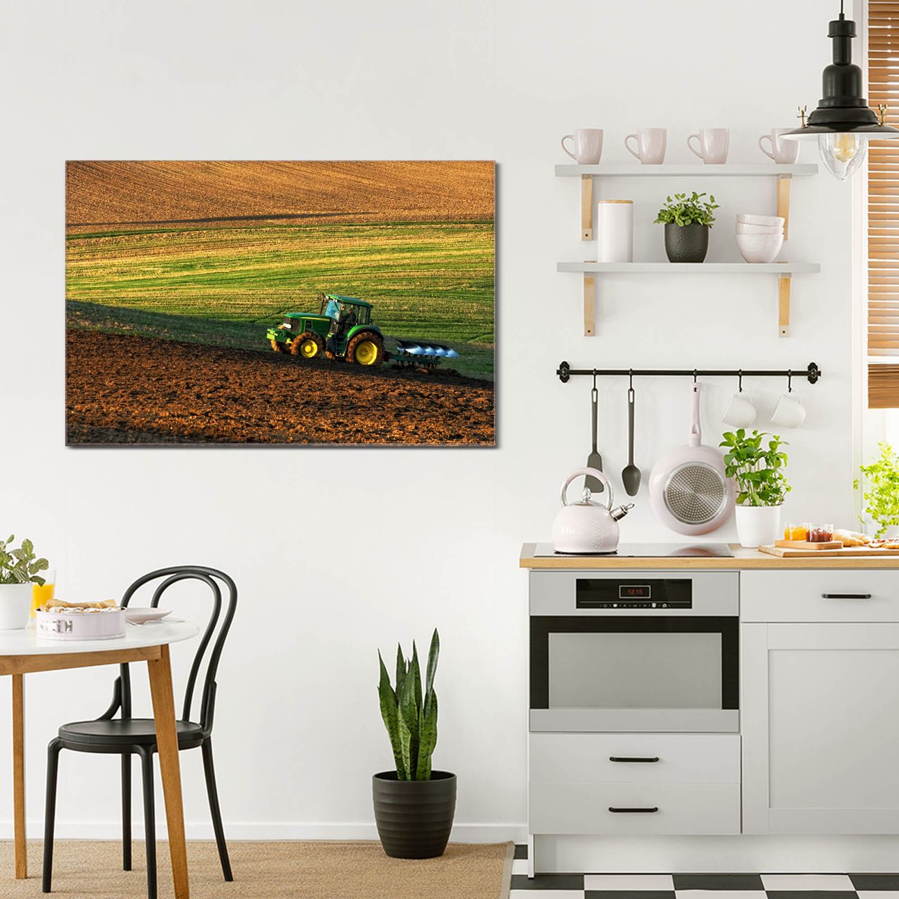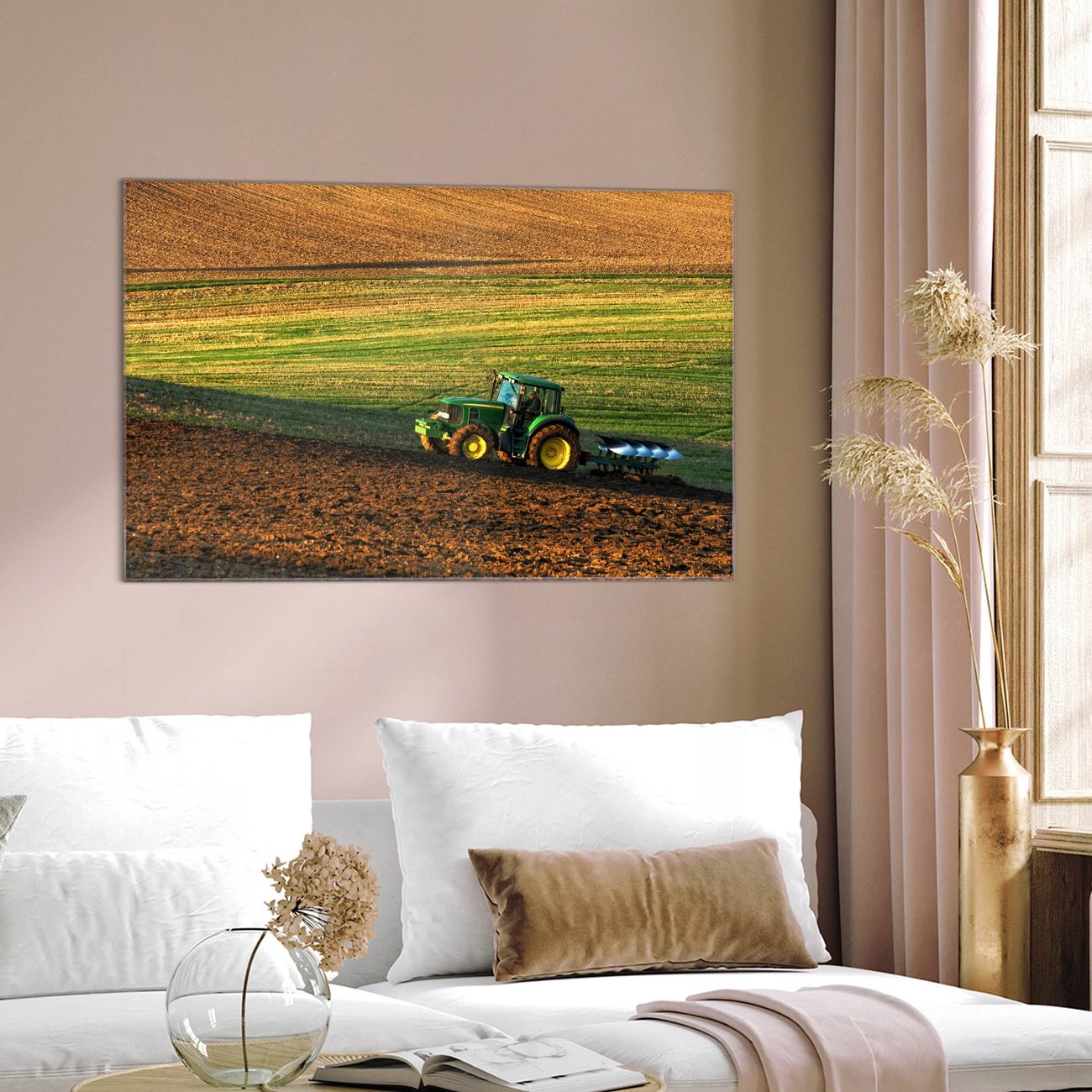 Unsere einzigartigen Glasbilder im Querformat von banjado mit Motiv Pflügen sind der absolute Hingucker! Unsere Banjado Glasbilder sind sehr begehrt, weil sie top verarbeitet sind und sich ganz leicht montieren lassen. Schon mit wenigen Handgriffen hängen sie an der Wand und strahlen mit höchster brillianz. Durch die Ramenlose Herstellung schwebt das Echtglasbild förmlich an der Wand. Das Motiv erscheint besonders ausdrucksstark und hochwertig und ist hinter dem Echtglas geschützt.