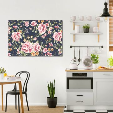 Einzigartiges Wandbild im Querformat Rosen Auf Anthrazit