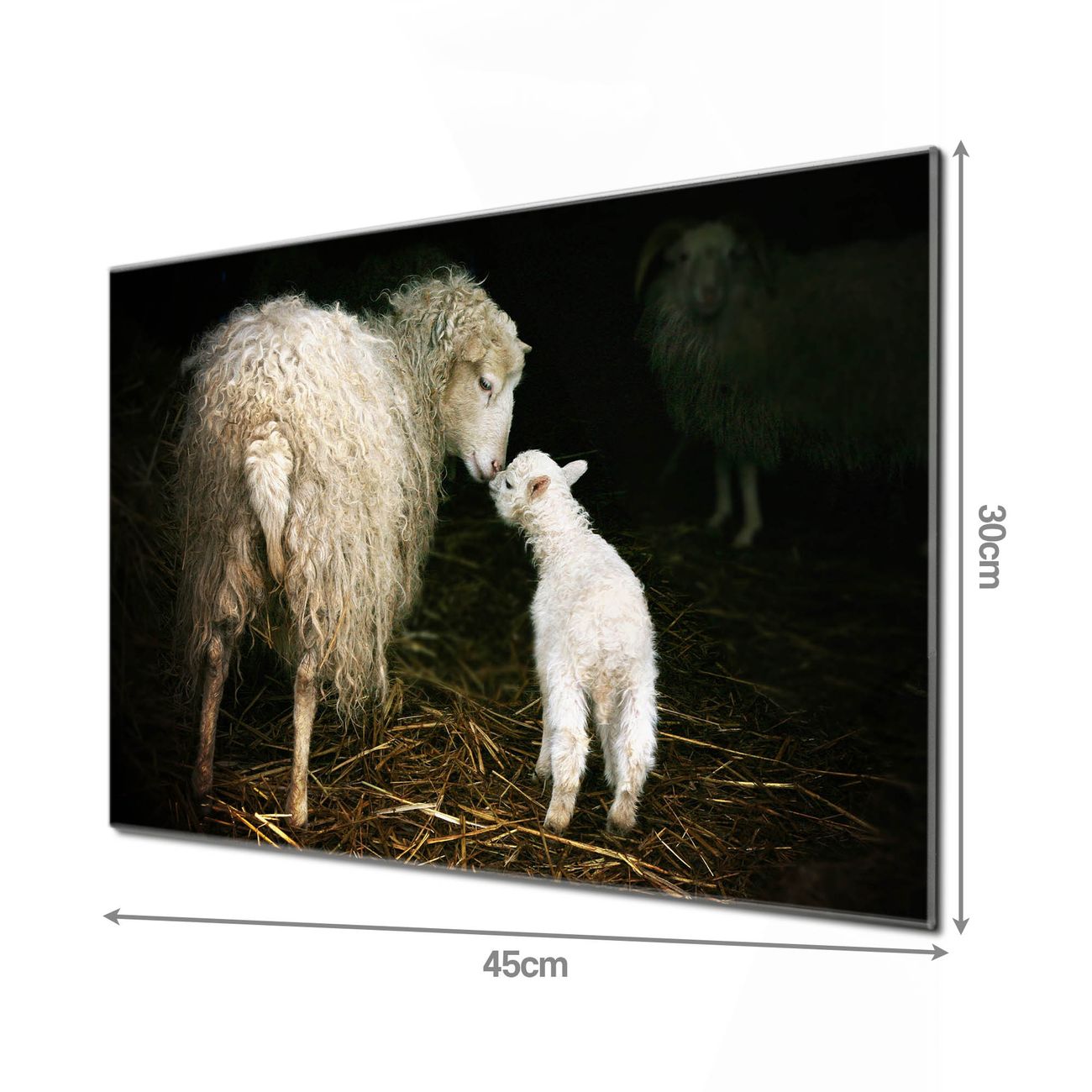 Unsere einzigartigen Glasbilder im Querformat von banjado mit Motiv Schaf Und Lamm sind der absolute Hingucker! Unsere Banjado Glasbilder sind sehr begehrt, weil sie top verarbeitet sind und sich ganz leicht montieren lassen. Schon mit wenigen Handgriffen hängen sie an der Wand und strahlen mit höchster brillianz. Durch die Ramenlose Herstellung schwebt das Echtglasbild förmlich an der Wand. Das Motiv erscheint besonders ausdrucksstark und hochwertig und ist hinter dem Echtglas geschützt.