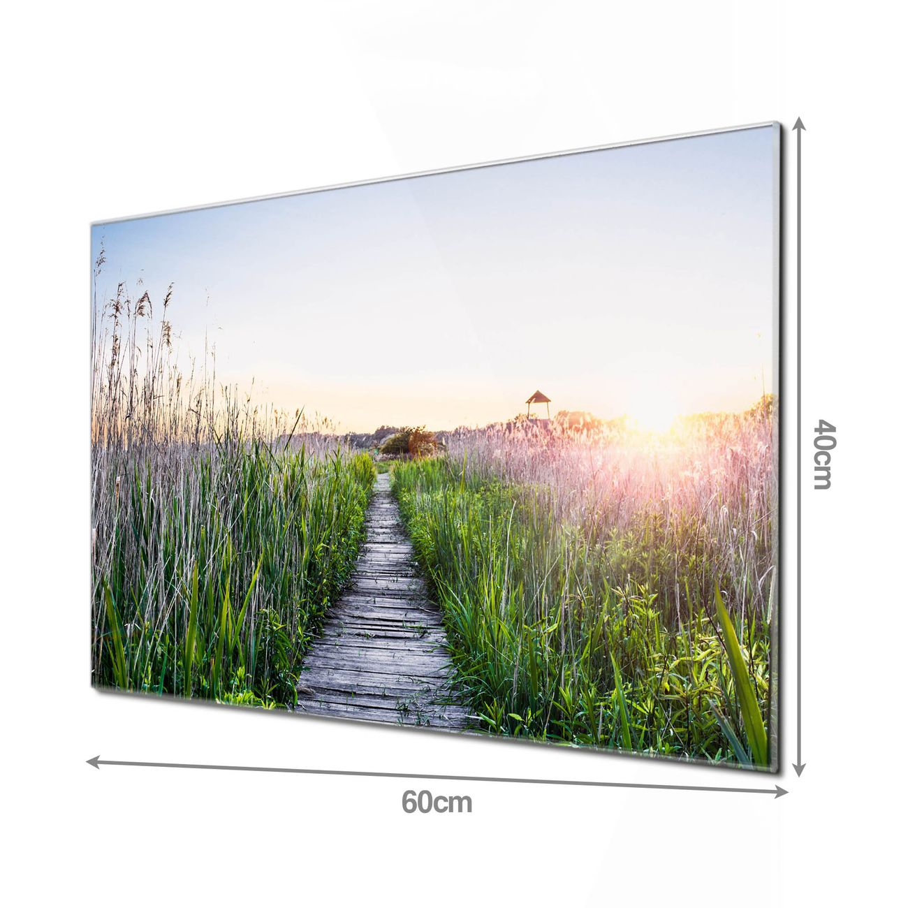 Unsere einzigartigen Glasbilder im Querformat von banjado mit Motiv Steg Durchs Schilf sind der absolute Hingucker! Unsere Banjado Glasbilder sind sehr begehrt, weil sie top verarbeitet sind und sich ganz leicht montieren lassen. Schon mit wenigen Handgriffen hängen sie an der Wand und strahlen mit höchster brillianz. Durch die Ramenlose Herstellung schwebt das Echtglasbild förmlich an der Wand. Das Motiv erscheint besonders ausdrucksstark und hochwertig und ist hinter dem Echtglas geschützt.