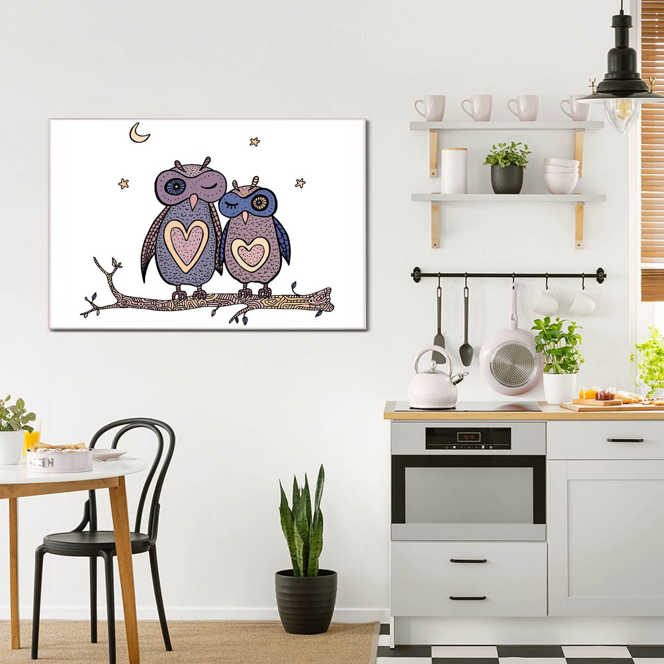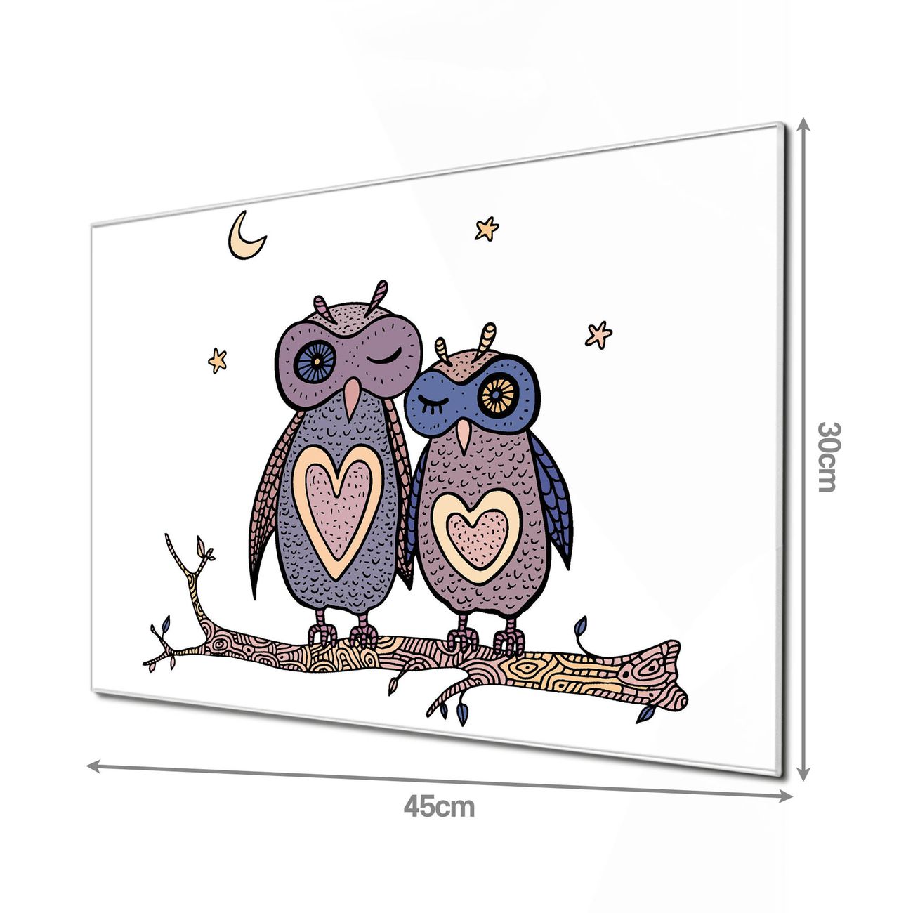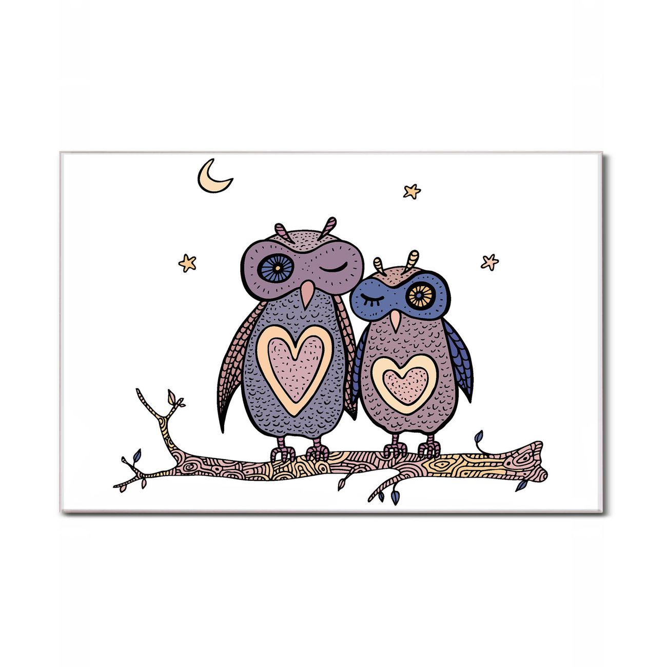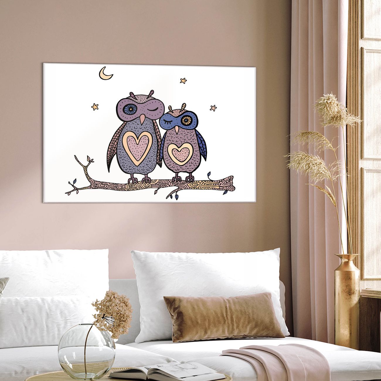 Einzigartiges Wandbild im Querformat Verliebte Eulen