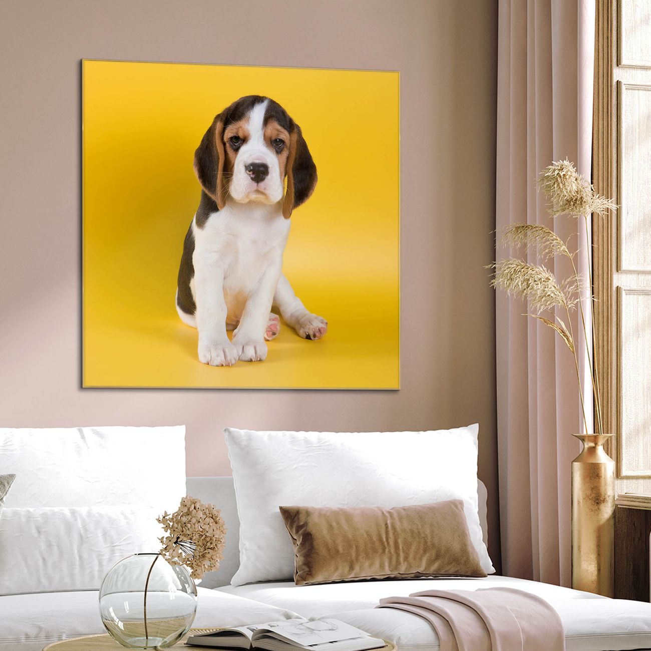Quadratisches Wandbild aus Glas Beagle