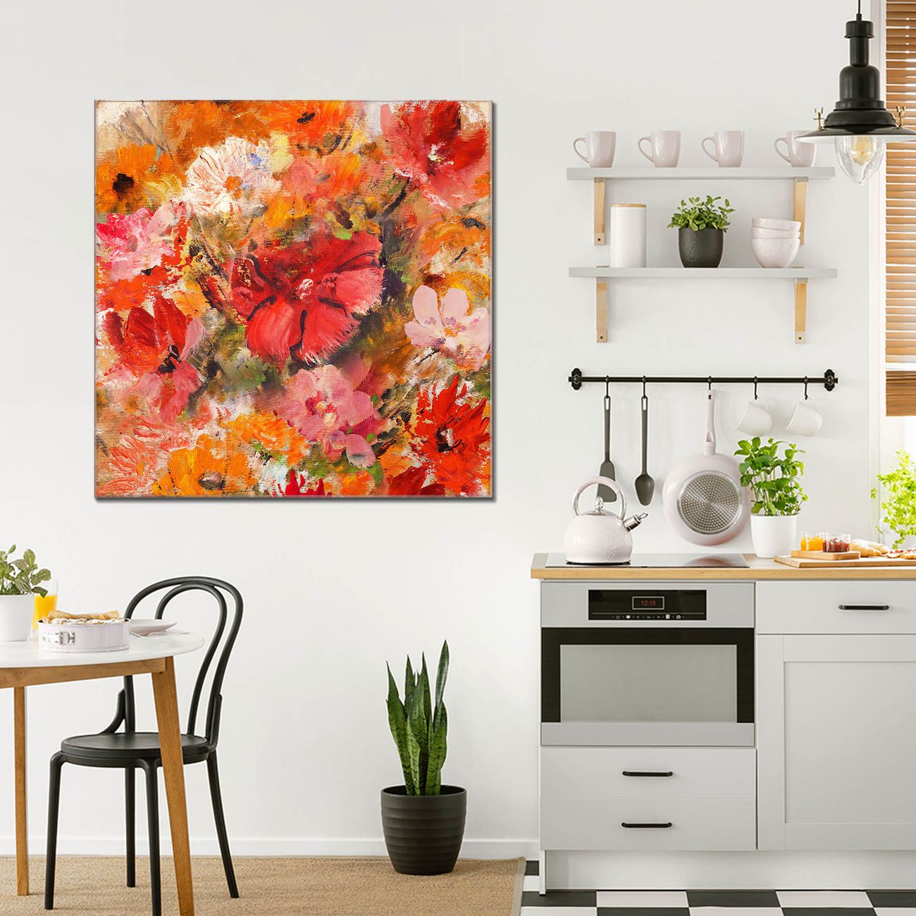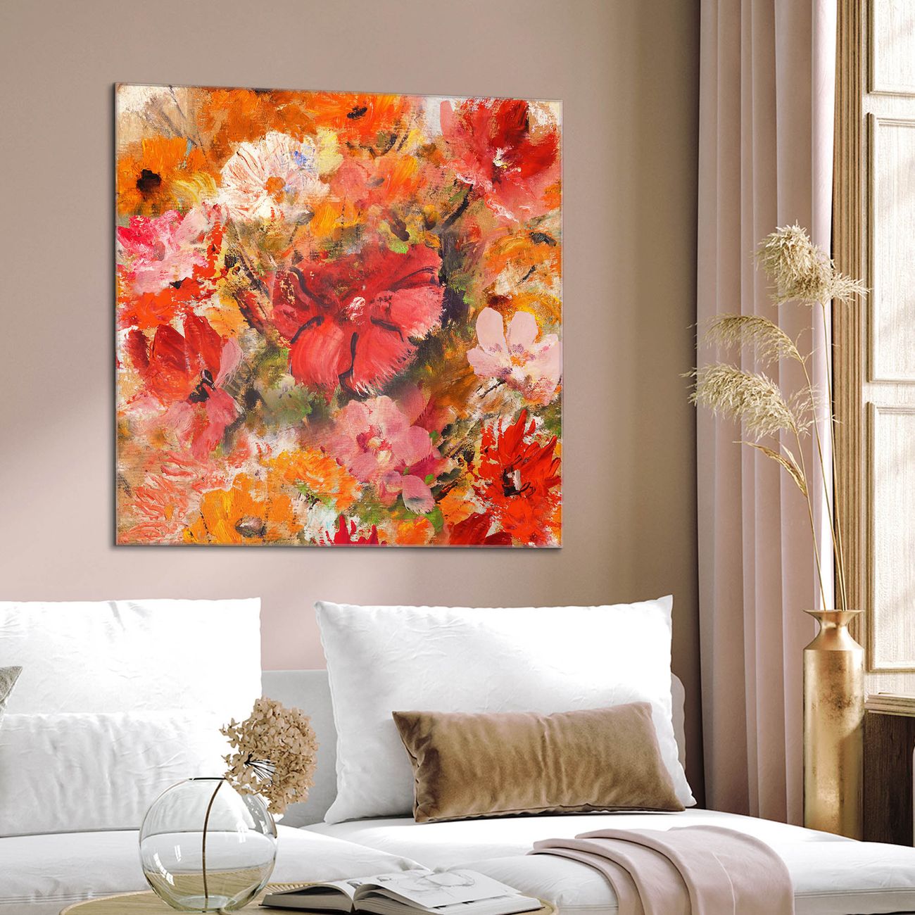 Quadratisches Wandbild aus Glas Fallende Blumen