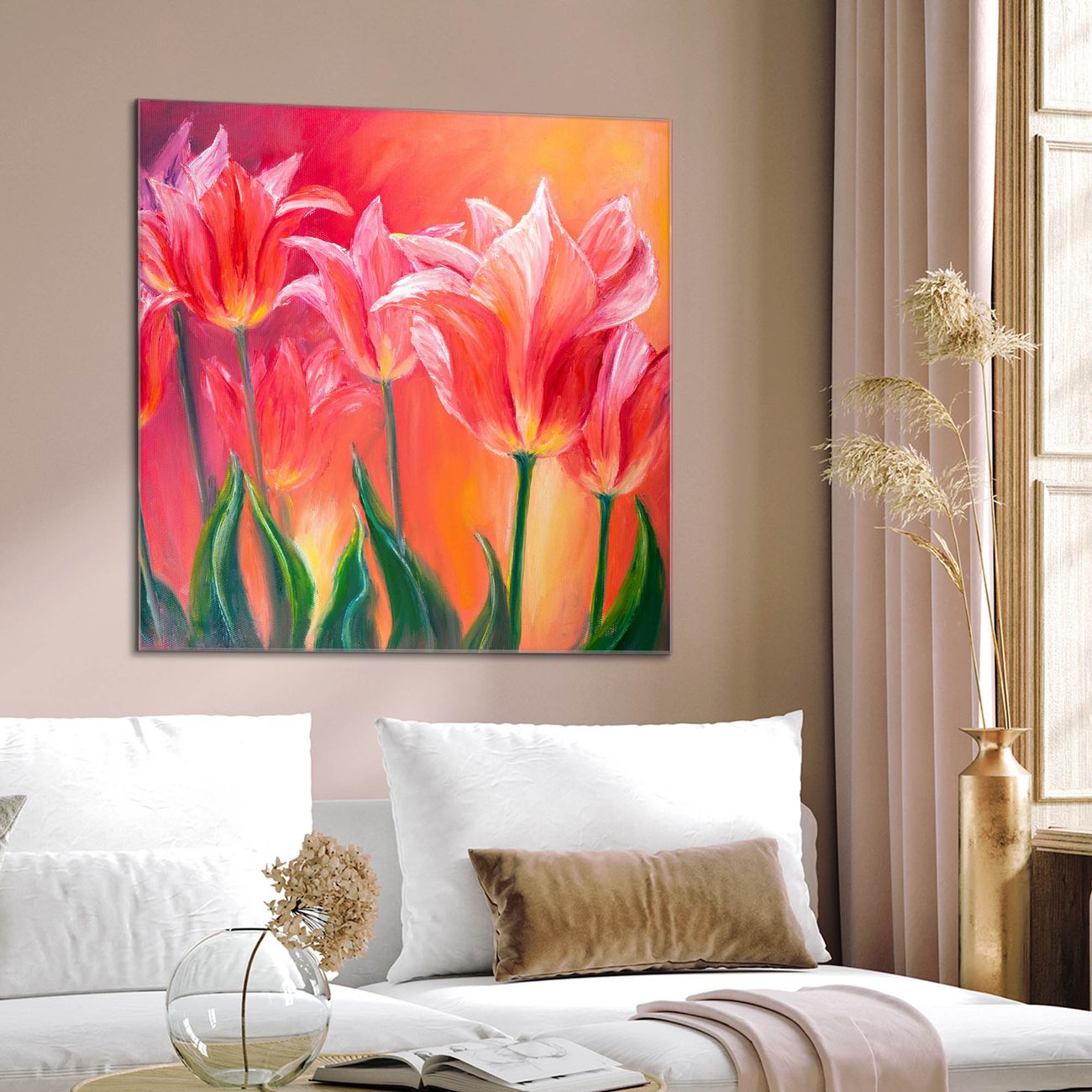 Quadratisches Wandbild aus Glas Gemalte Tulpen